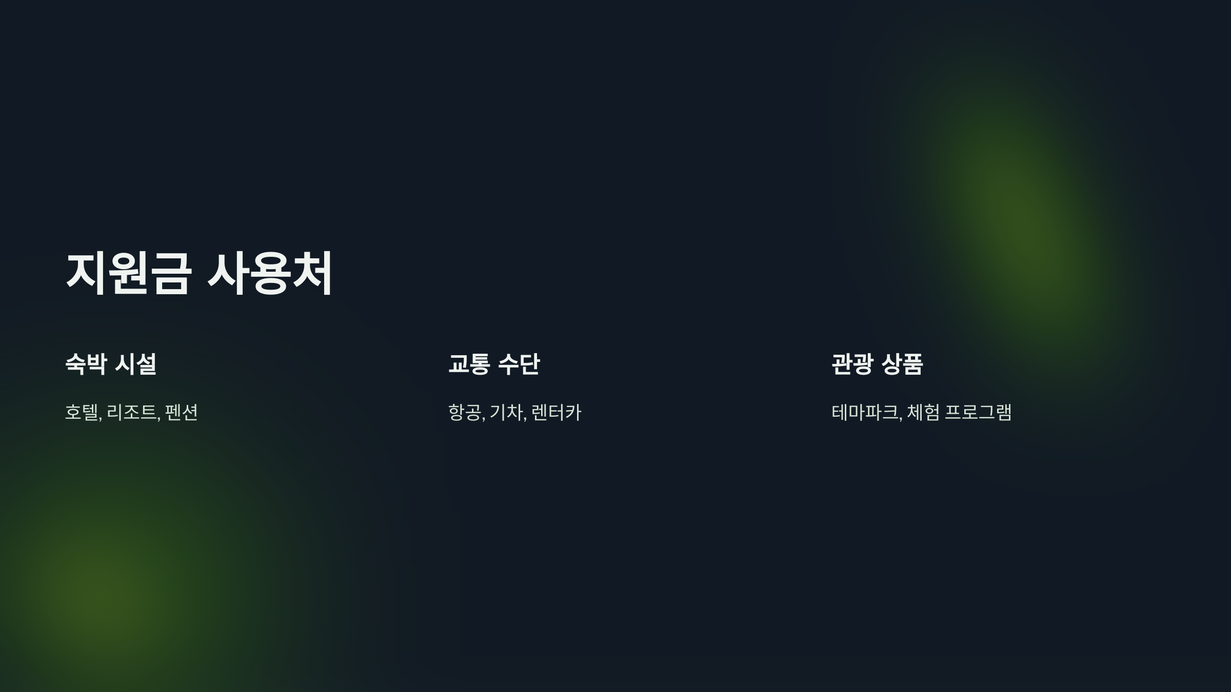 지원금은 숙박, 교통, 관광 활동 등 다양한 항목에 사용할 수 있어 여행 계획에 큰 유연성을 제공합니다.
