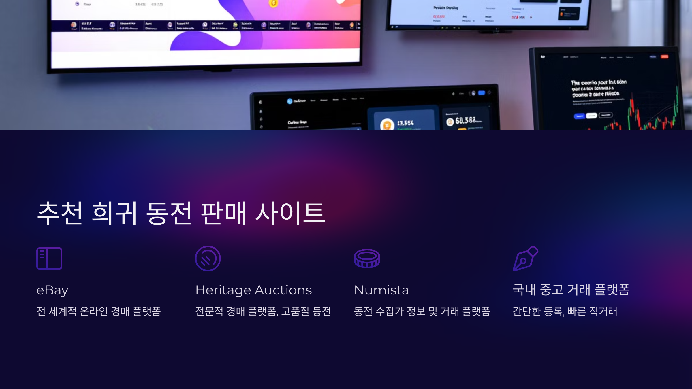- 특징: 감정된 동전만 등록되며, 고가의 동전 거래가 활발히 이루어집니다.