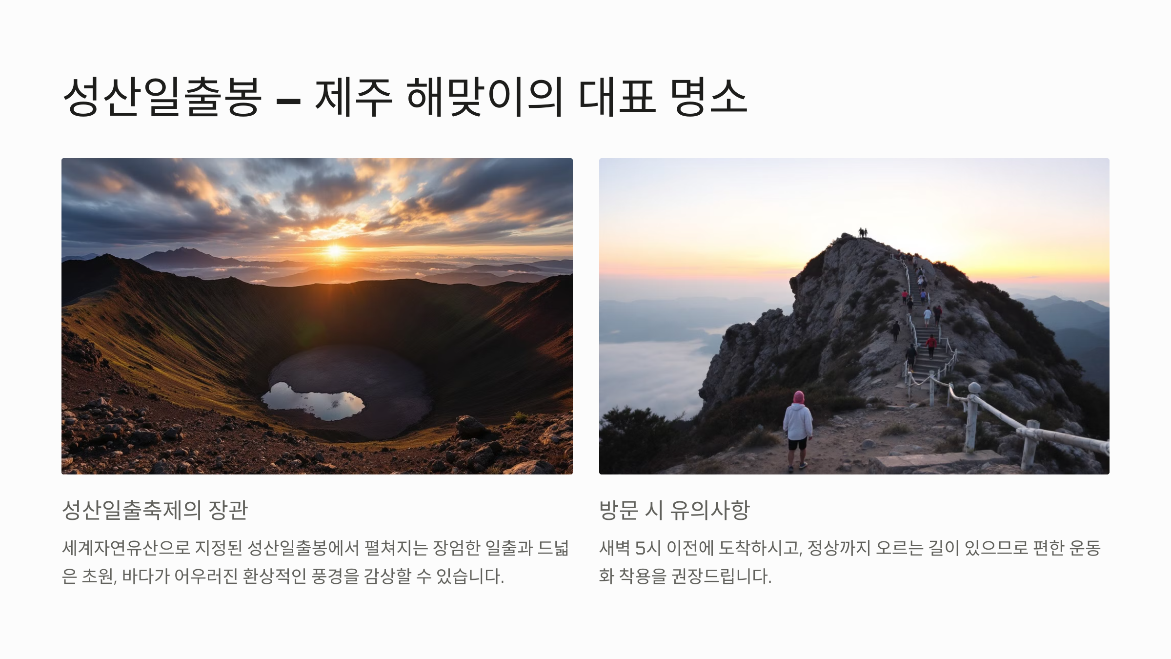 - 추천 포인트: 성산일출축제, 드넓은 초원과 바다가 어우러진 장관