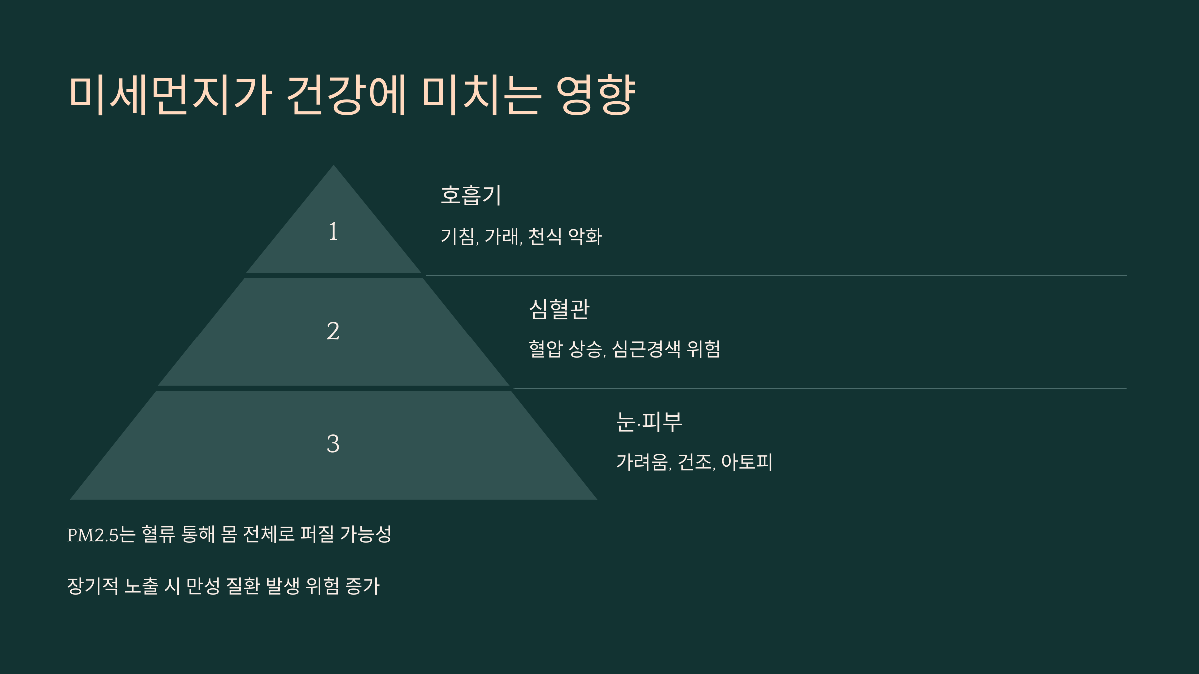 내가 생각했을 때, 미세먼지는 단순한 먼지가 아니라 건강을 위협하는 보이지 않는 적 같아요. 특히 호흡기나 심장 건강이 약한 사람들은 더욱 주의해야겠어요! 😷