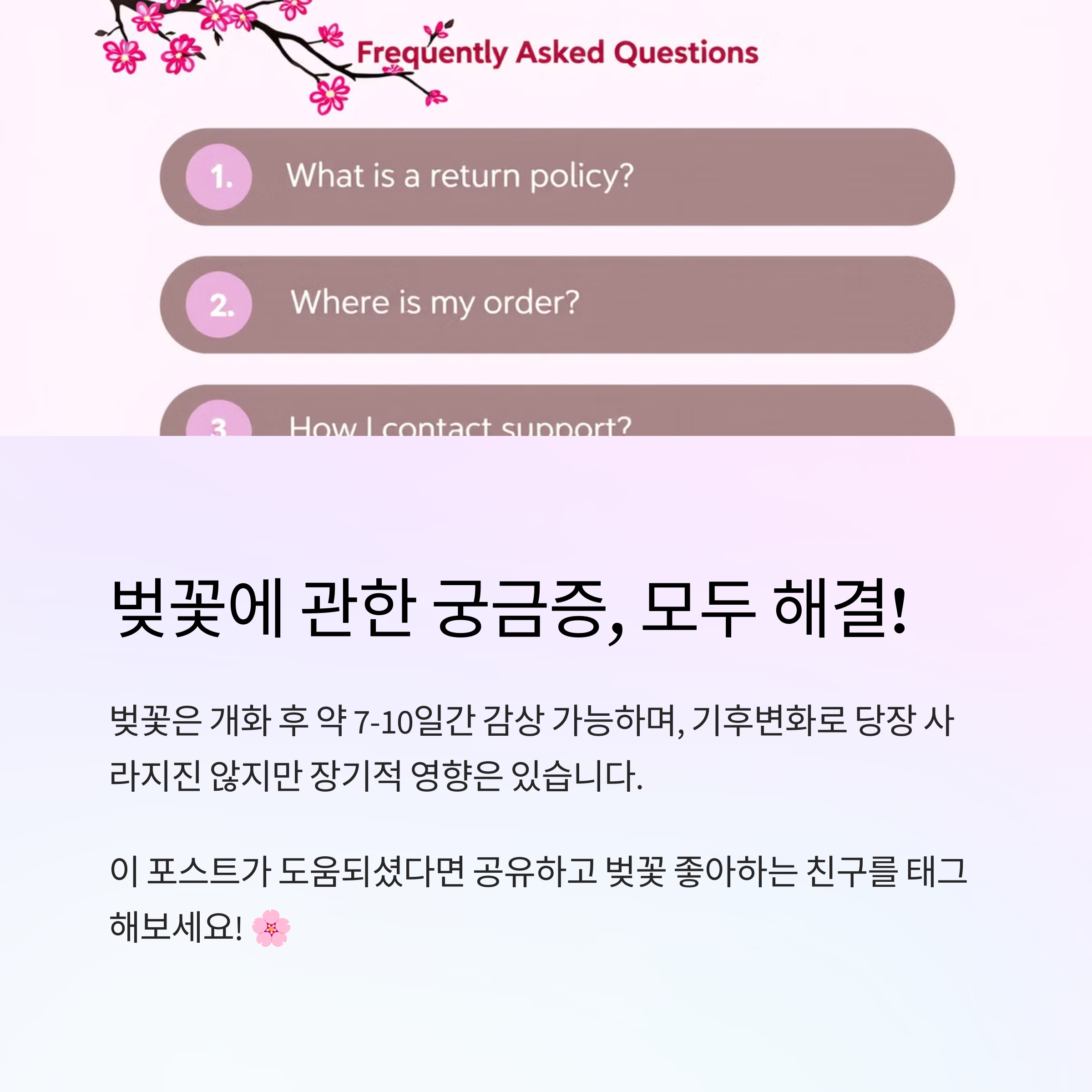 이제 벚꽃에 대한 모든 준비는 끝났고, 남은 건 현장 감성뿐이겠죠? 그래도 혹시 궁금한 점 많을 여러분을 위해, 자주 묻는 질문들을 아래에 정리해봤어요!