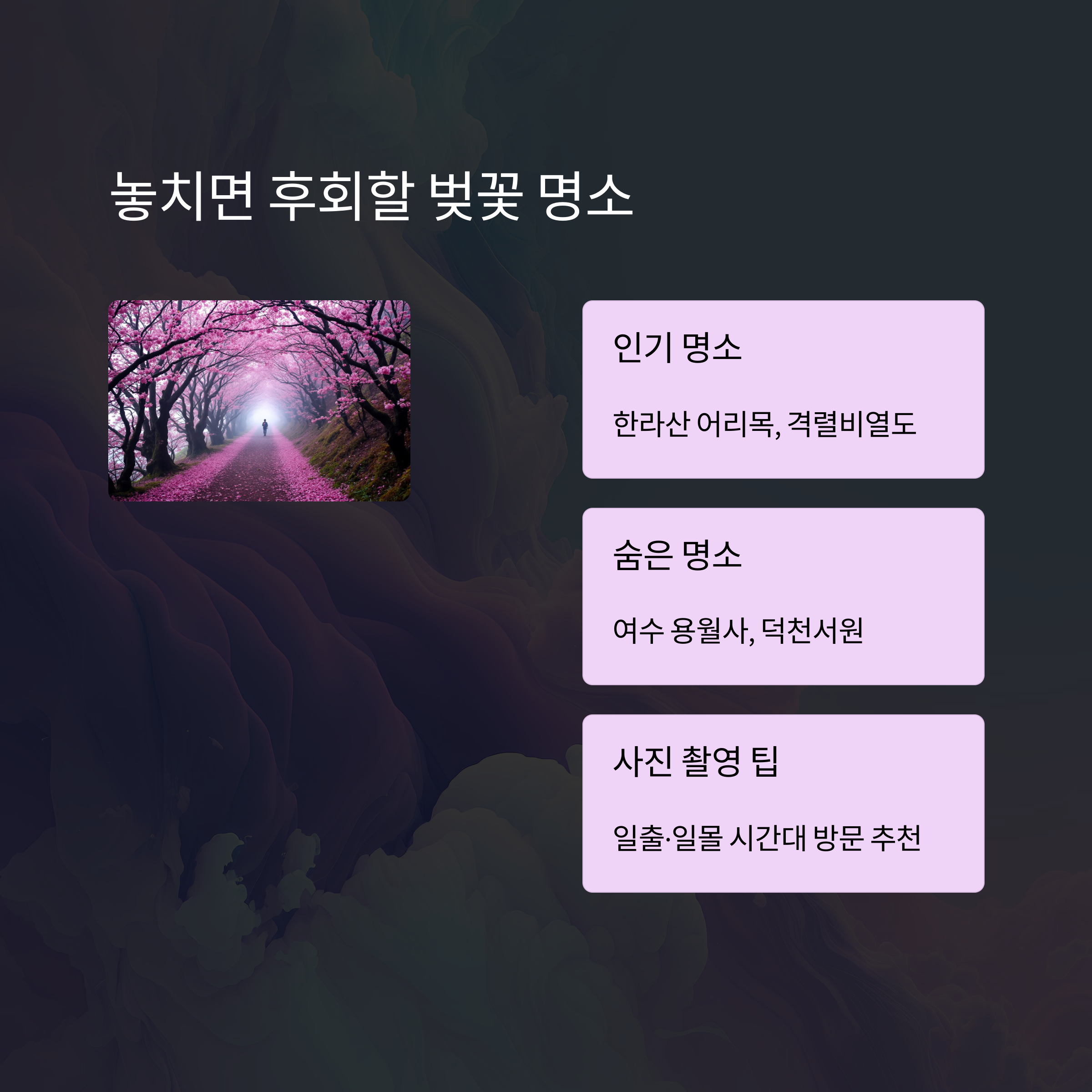 | 장소 | 특징 | 개화 시기 | 추천 포인트 |