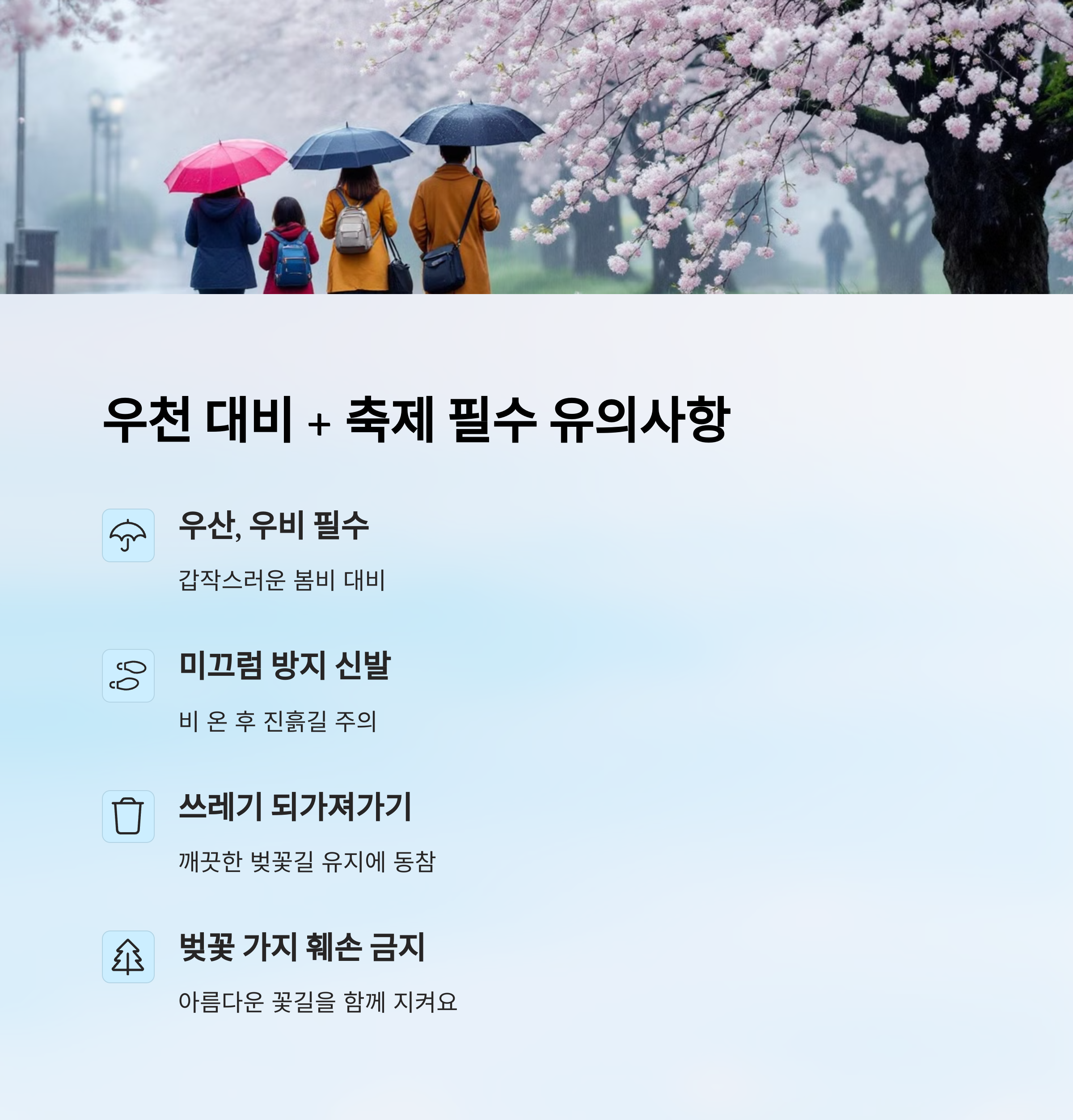 🌧️ 우천 대비 팁 + 유의사항