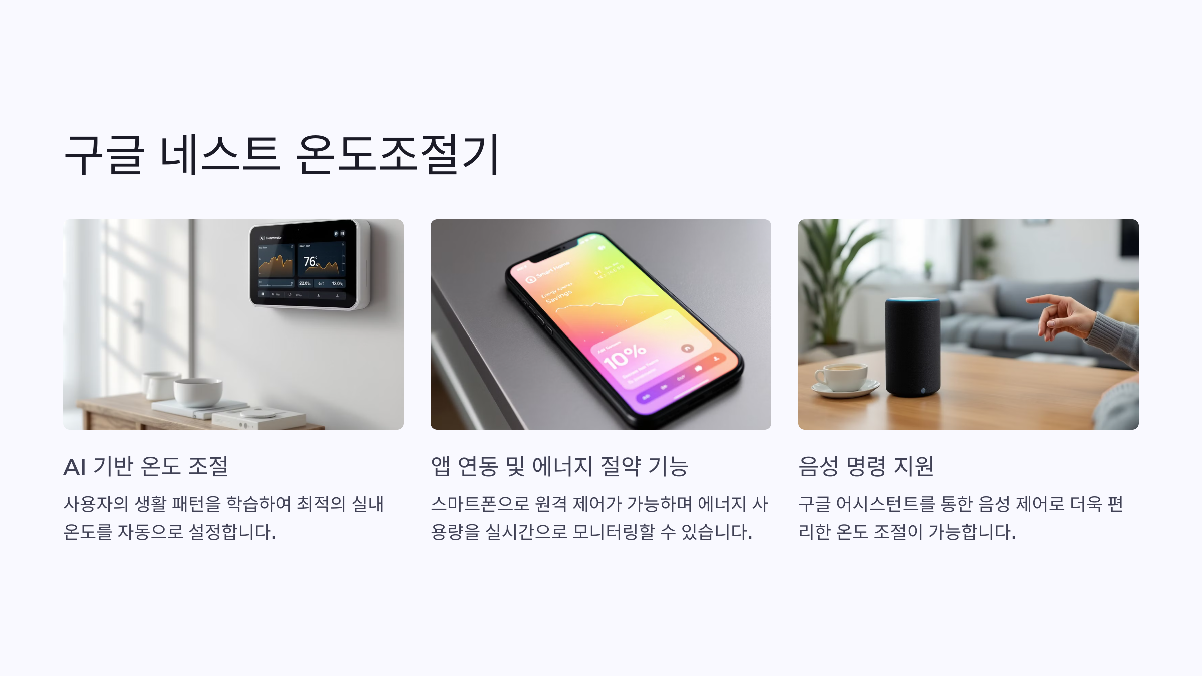 - AI 기반 온도 조절: 사용자의 생활 패턴을 학습하여 자동으로 최적의 온도를 설정합니다.