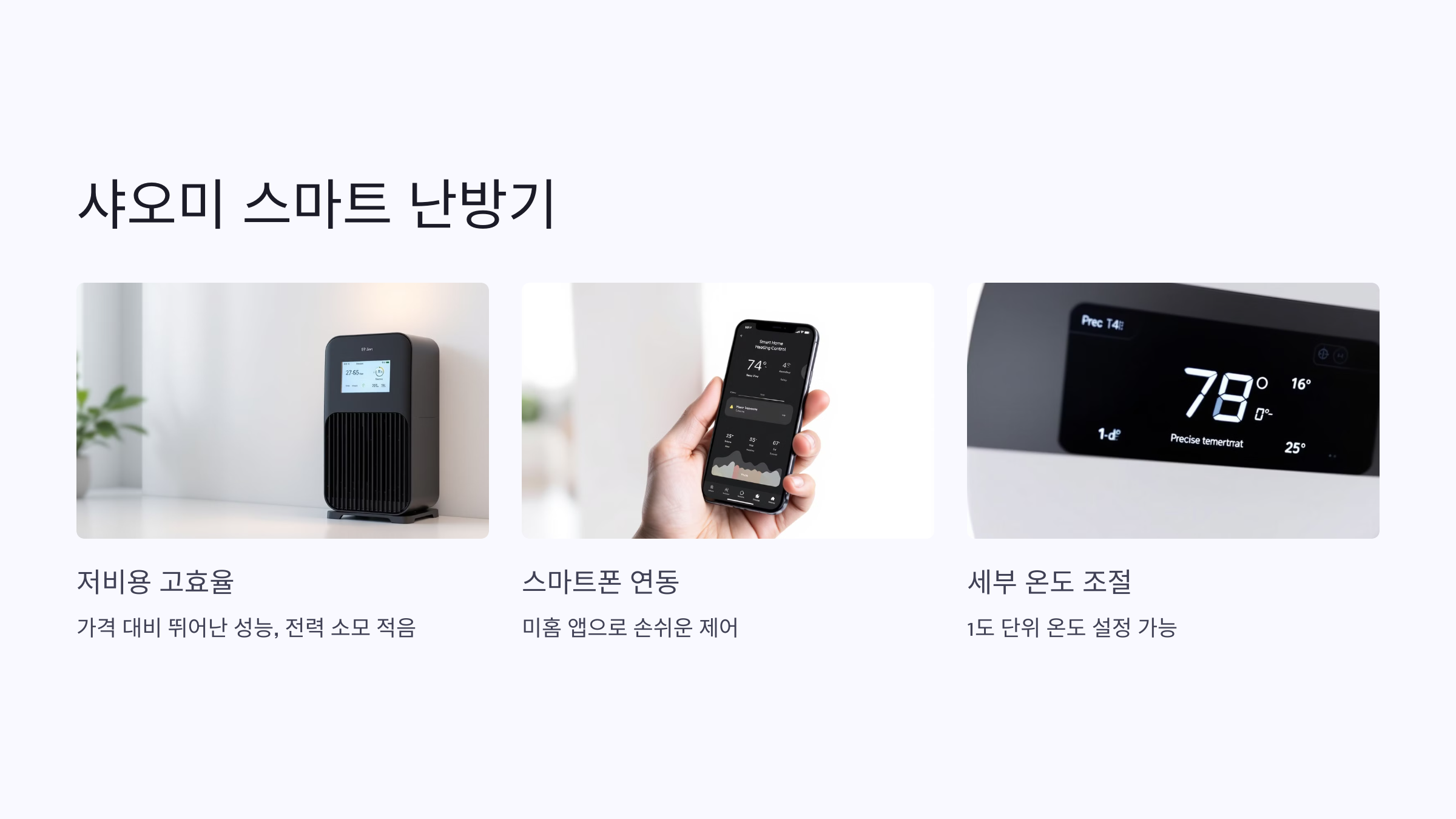 - 스마트폰 연동: 샤오미 미홈 앱으로 손쉽게 난방기를 제어할 수 있습니다.