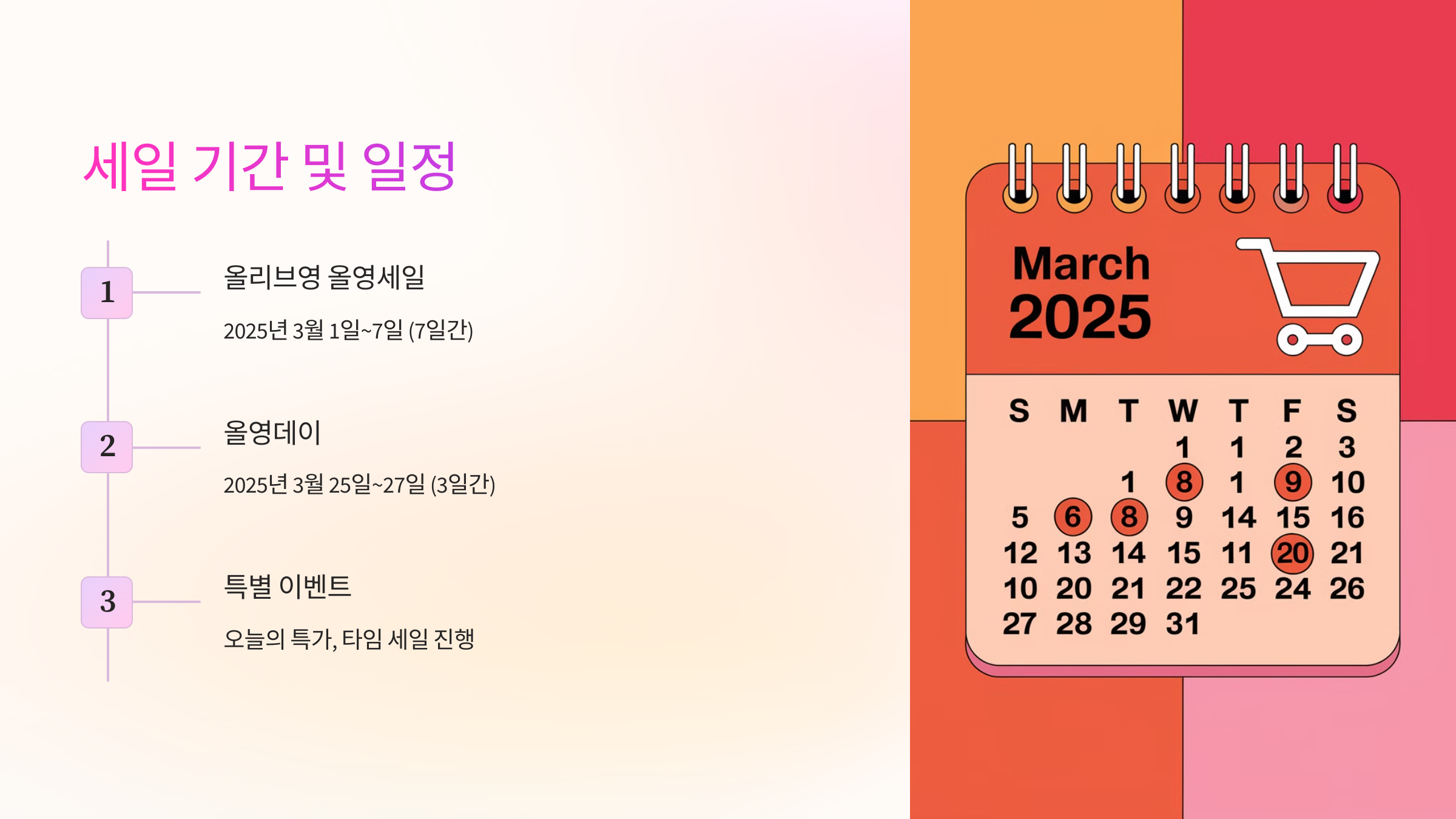 Q1. 올리브영 3월 세일은 언제 시작하고 언제 끝나나요?