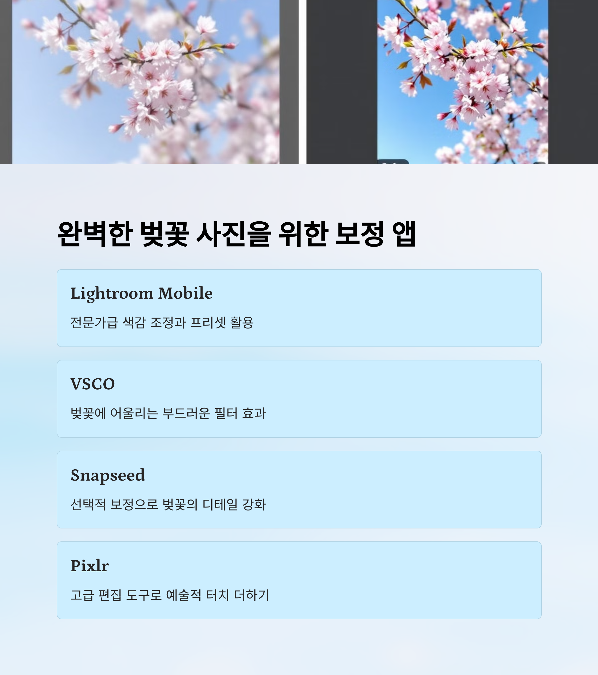 🎨 벚꽃 사진 보정 앱 & 기능 비교표