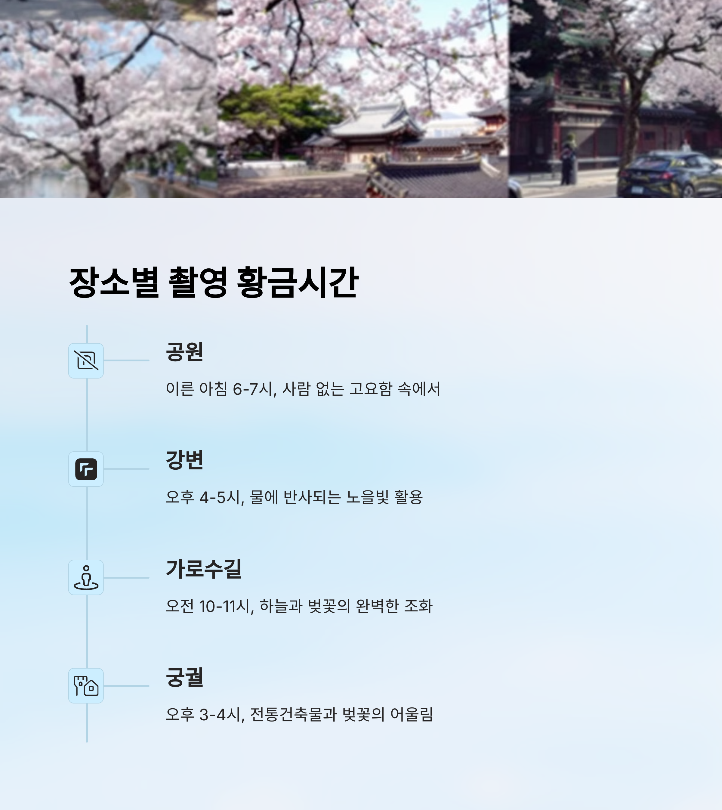 📍 장소별 시간대별 촬영 전략