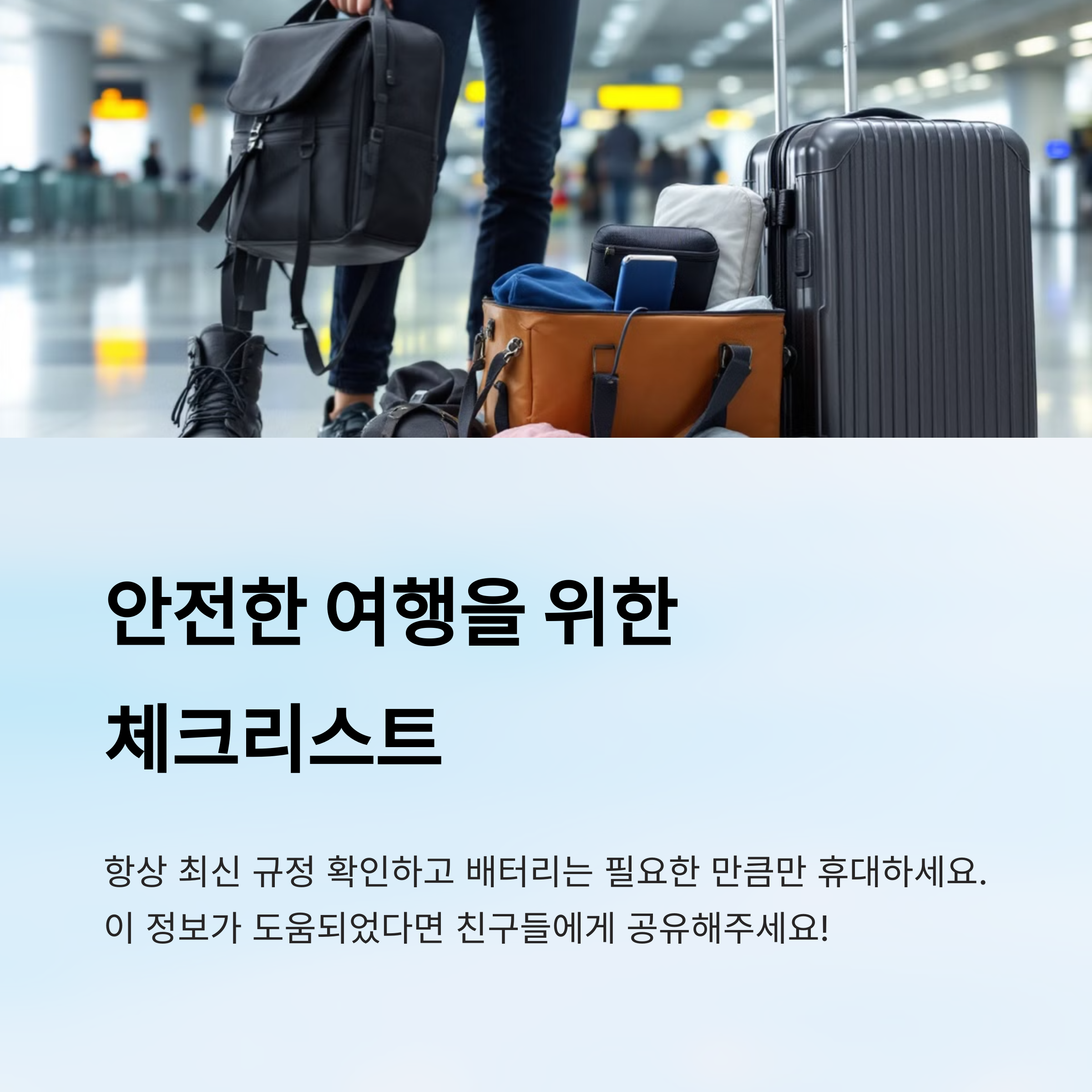 결론부터 말하자면, 보조배터리는 반드시 기내에 들고 타야 하며, 용량 제한을 넘지 않는 제품만 안전하게 반입 가능하다는 점! 꼭 기억해 주세요 🔋