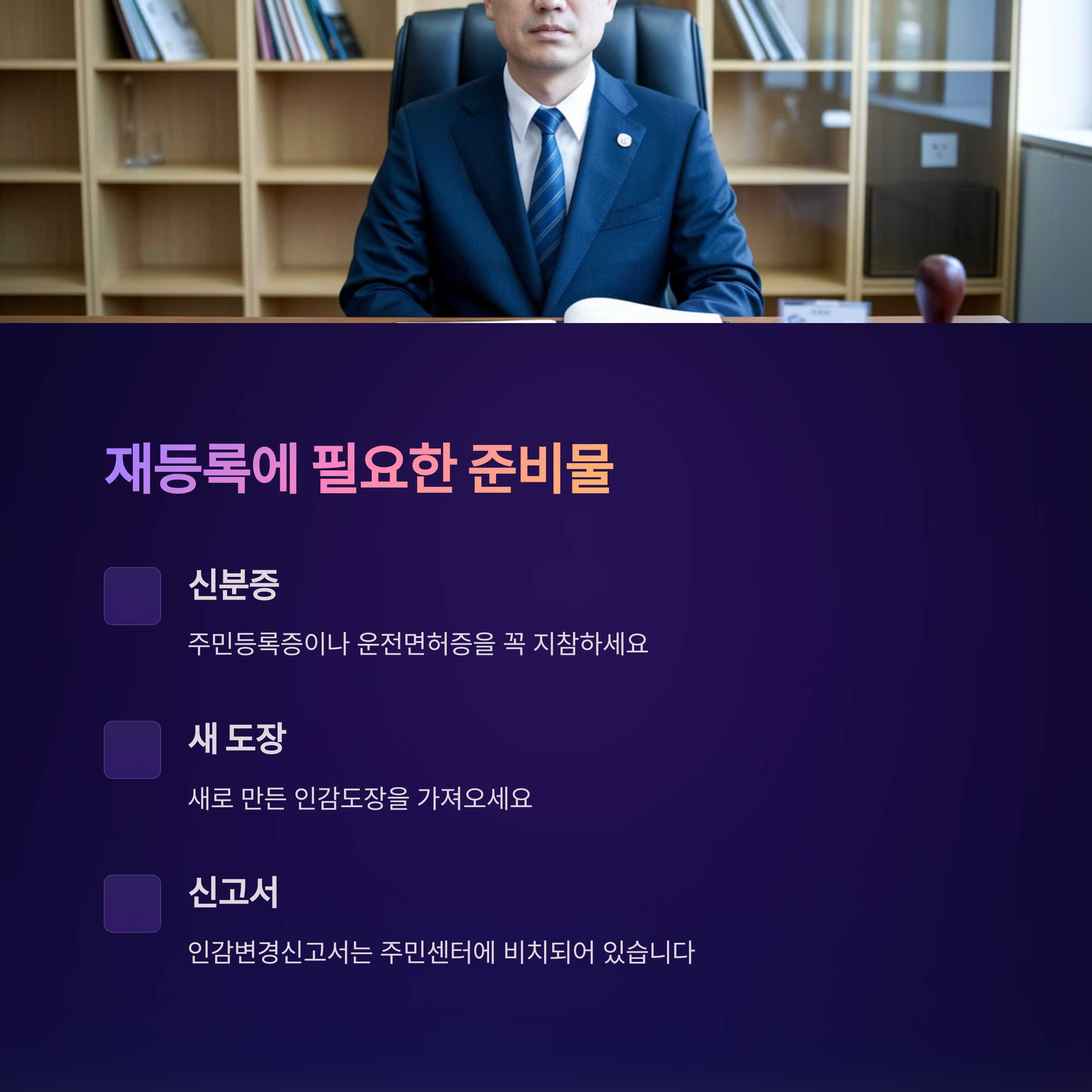 ✅ **준비물:** 주민등록증(또는 운전면허증, 여권) + 새로운 인감도장