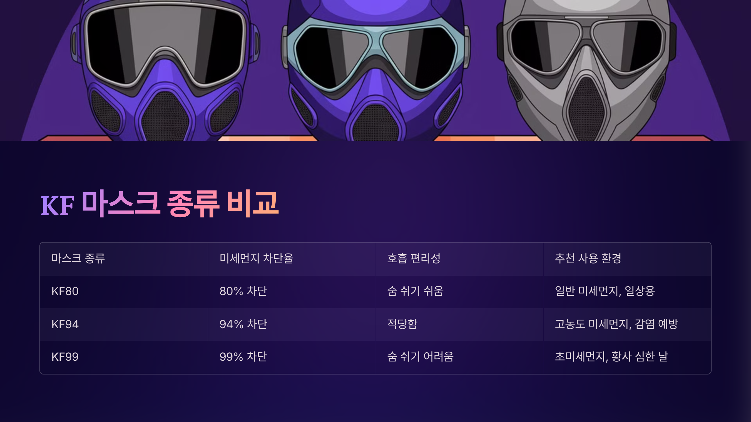 📌 KF 마스크 종류 비교