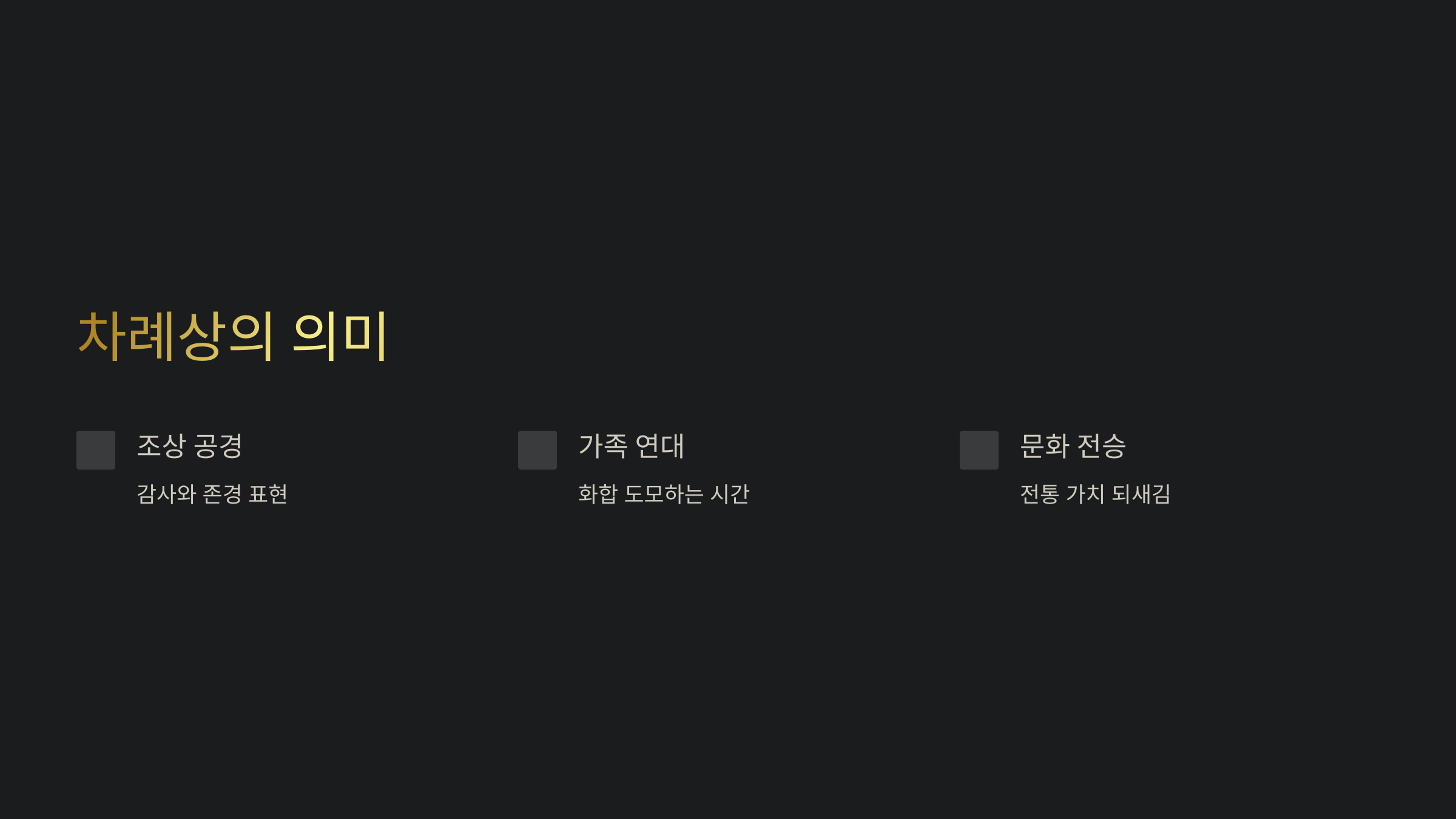 이처럼 차례상은 단순히 '음식 차림'이 아니라, 조상과 후손을 이어주는 다리이자 가족 공동체의 정신을 상징하는 중요한 문화유산이에요.
