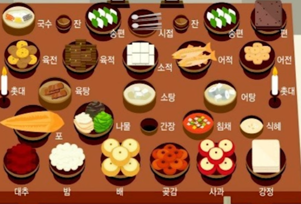 육류 및 생선류: 육류와 생선은 조상의 건강과 안녕을 기원하는 의미를 담아요. 불고기, 소고기산적, 생선찜 등이 대표적이에요.