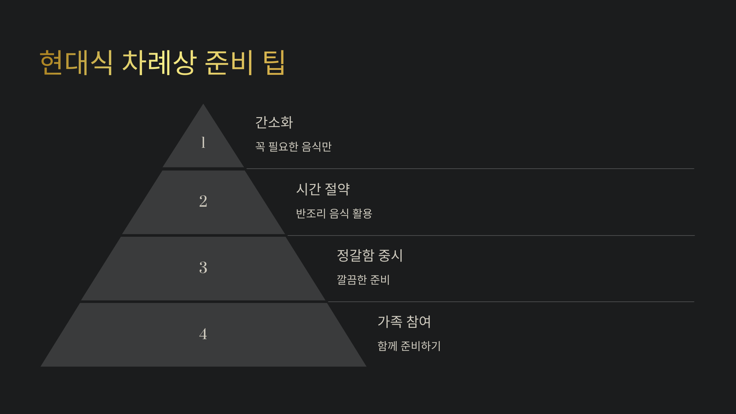 첫 번째 팁: 간소화된 차례상을 준비하세요. 꼭 필요한 음식만 준비하고, 조상님께 드리는 정성을 더하는 것이 중요해요.