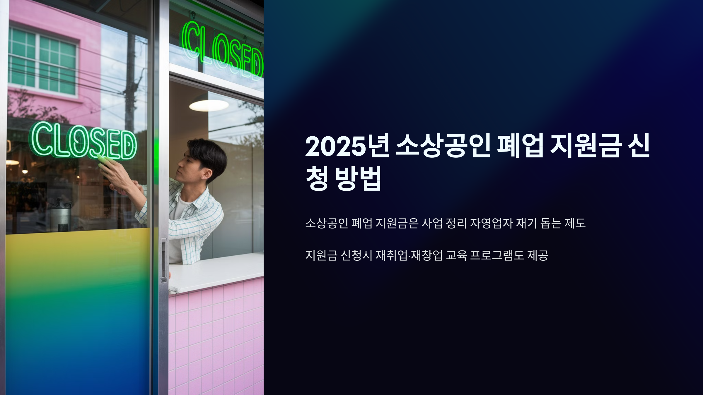 2025년 폐업 지원금은 중소벤처기업부와 소상공인시장진흥공단을 통해 운영되며, **폐업을 계획하고 있는 사업자뿐만 아니라, 이미 폐업한 소상공인도 신청 가능해요.** 단, 신청 자격 요건을 충족해야 해요.