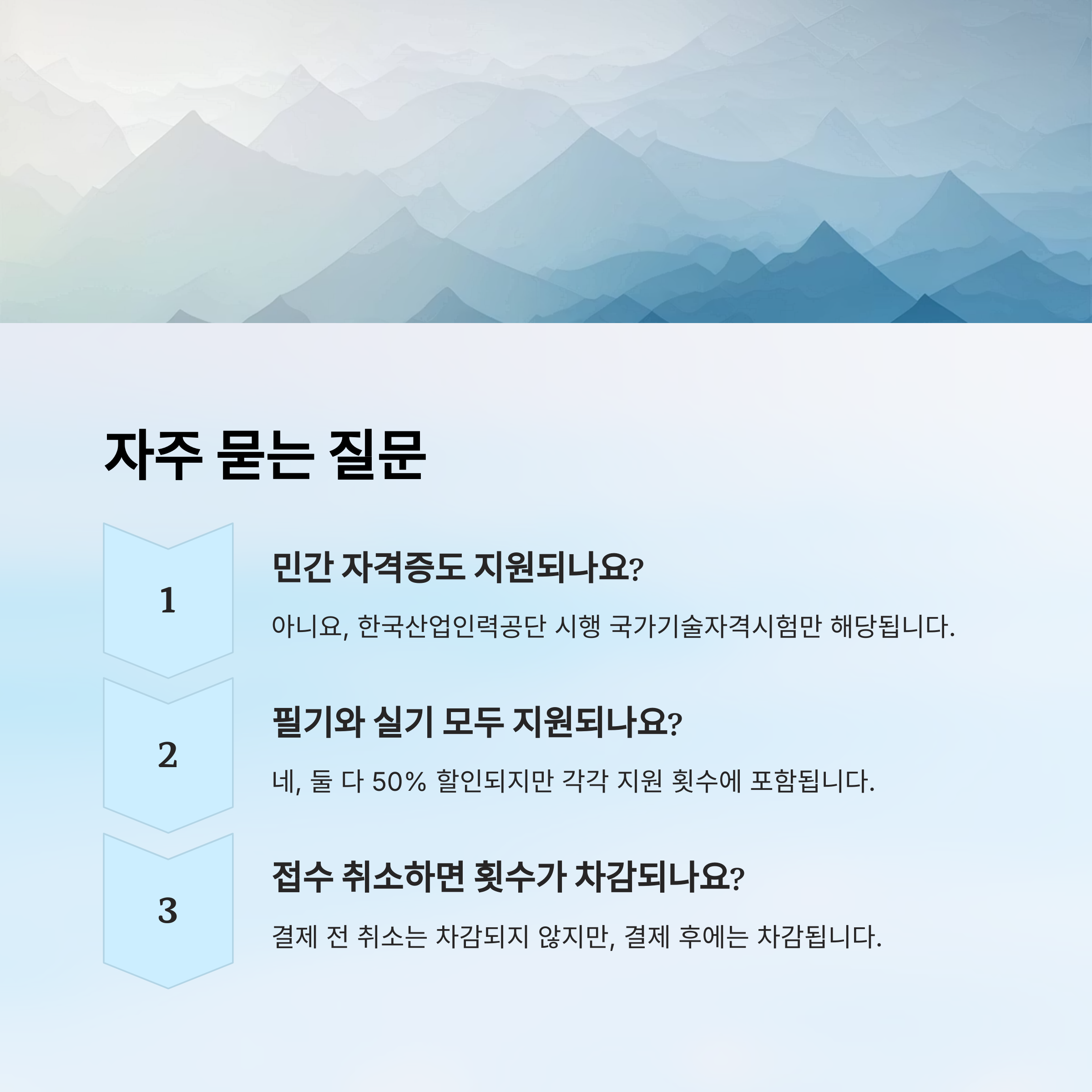 또 하나 중요한 건 접수 취소/환불 시 지원횟수 차감 기준이에요. 접수 기간 내 취소는 차감이 없지만, 시험날 불참하거나 기간 지나서 환불하면 사용한 걸로 간주돼요. 꼭 주의하세요!