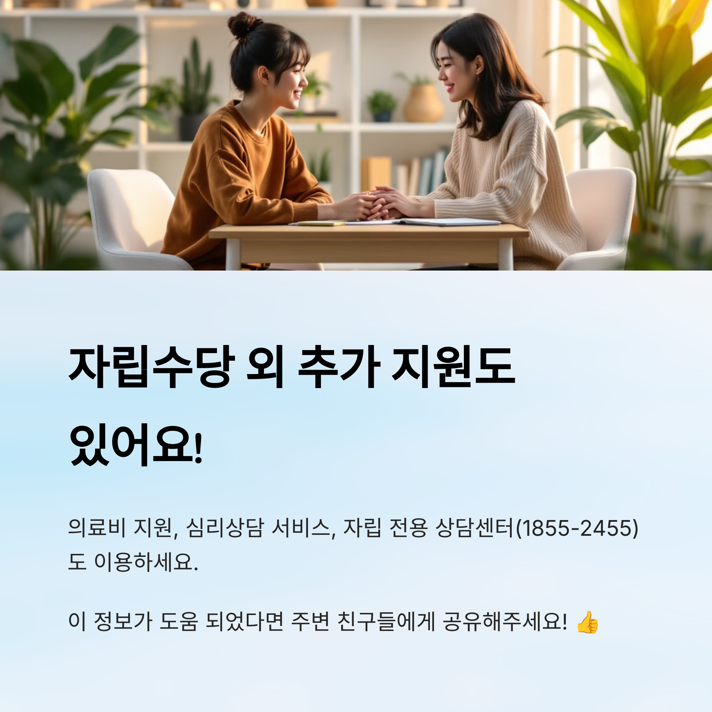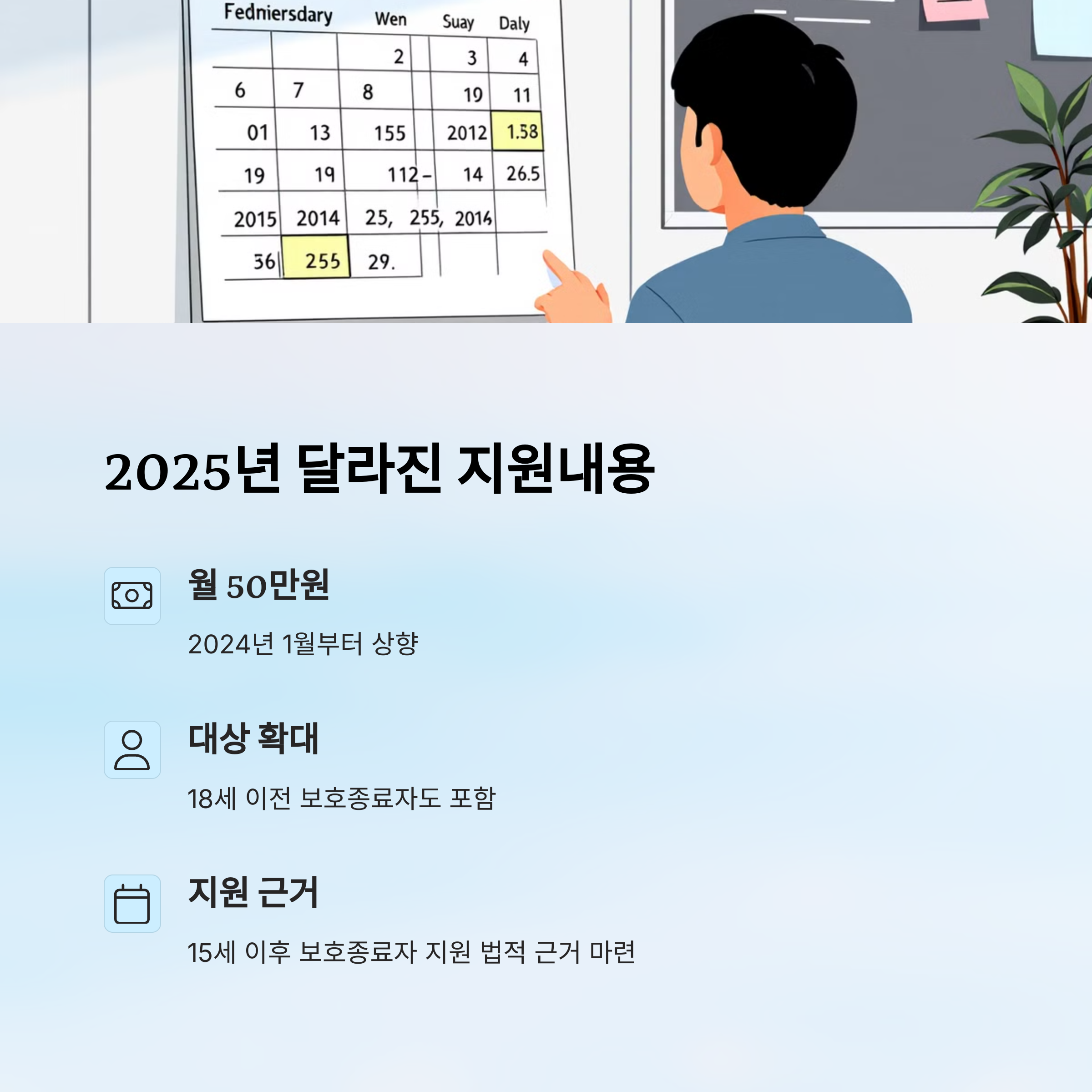 2025년부터는 자립수당이 월 50만 원으로 인상되었고, 최대 5년(60개월)까지 지원 기간이 확대되었어요. 🙌