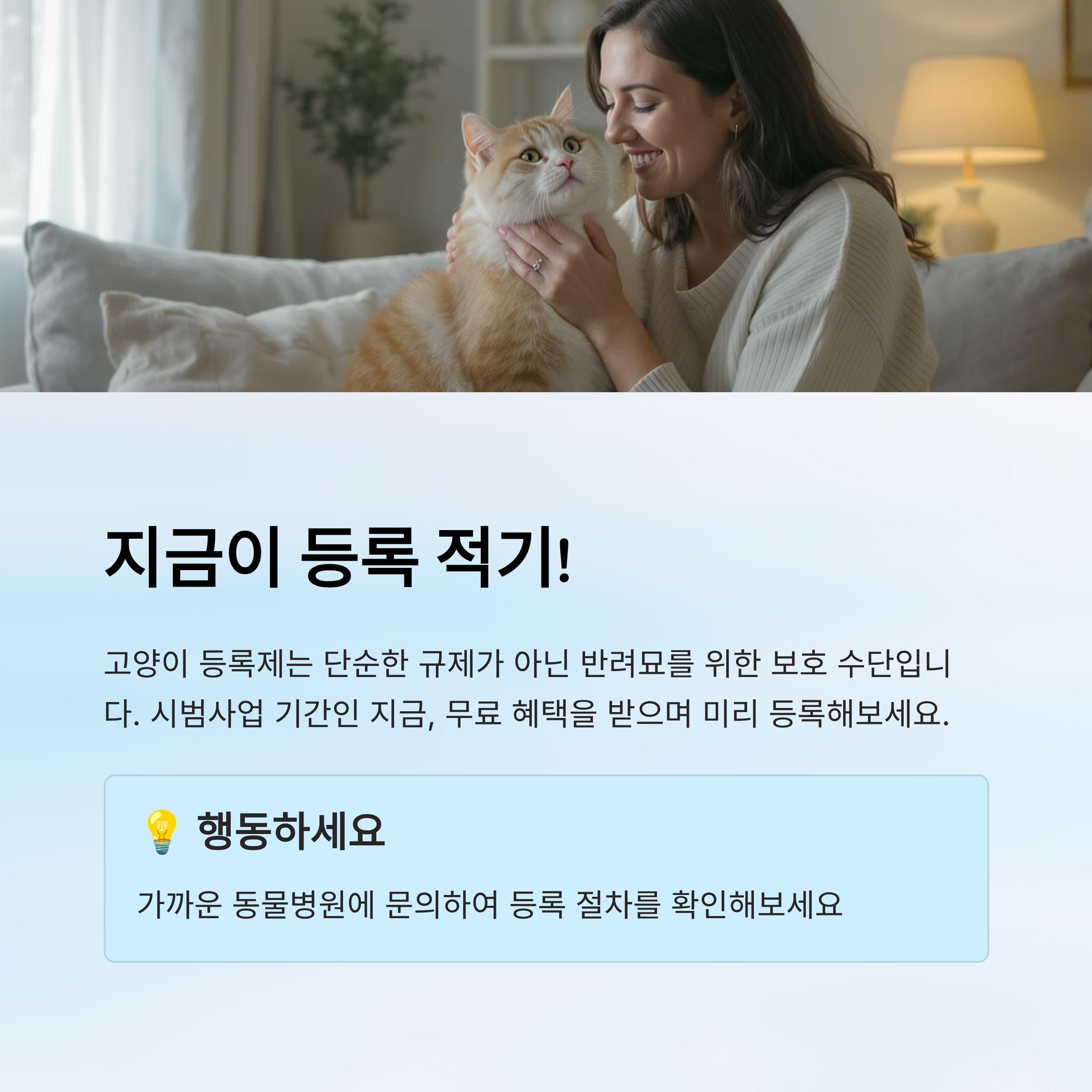 보호자 입장에서는 "실내묘인데 꼭 등록해야 할까?"라는 고민도 있을 수 있지만, 장기적으로는 유실 방지, 병력 관리, 의료 혜택 등의 면에서 도움이 될 수 있어요. 제도화가 되면 등록은 선택이 아닌 필수가 될 수도 있겠죠.😼