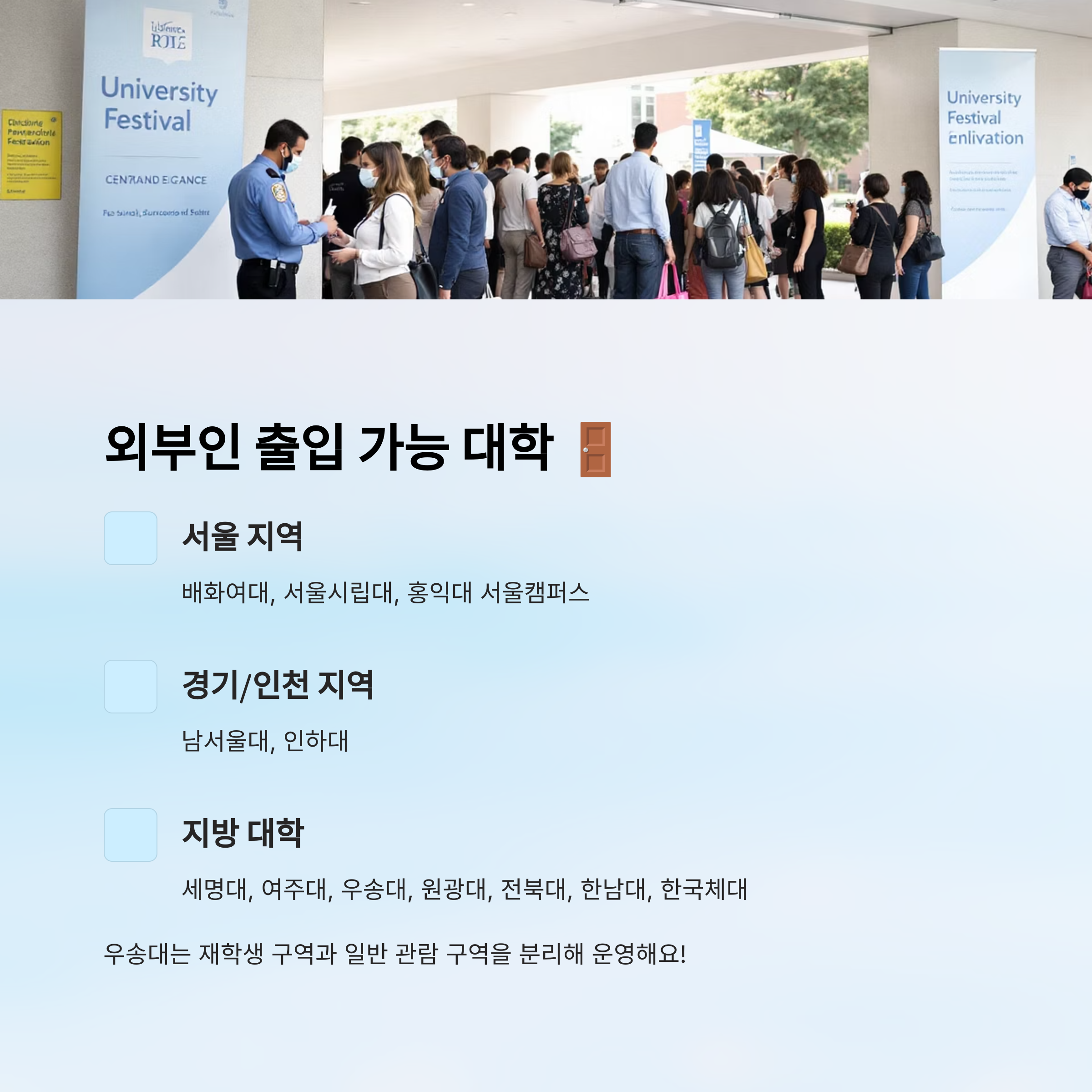 🎵 대학 축제 일정 및 외부인 출입 표