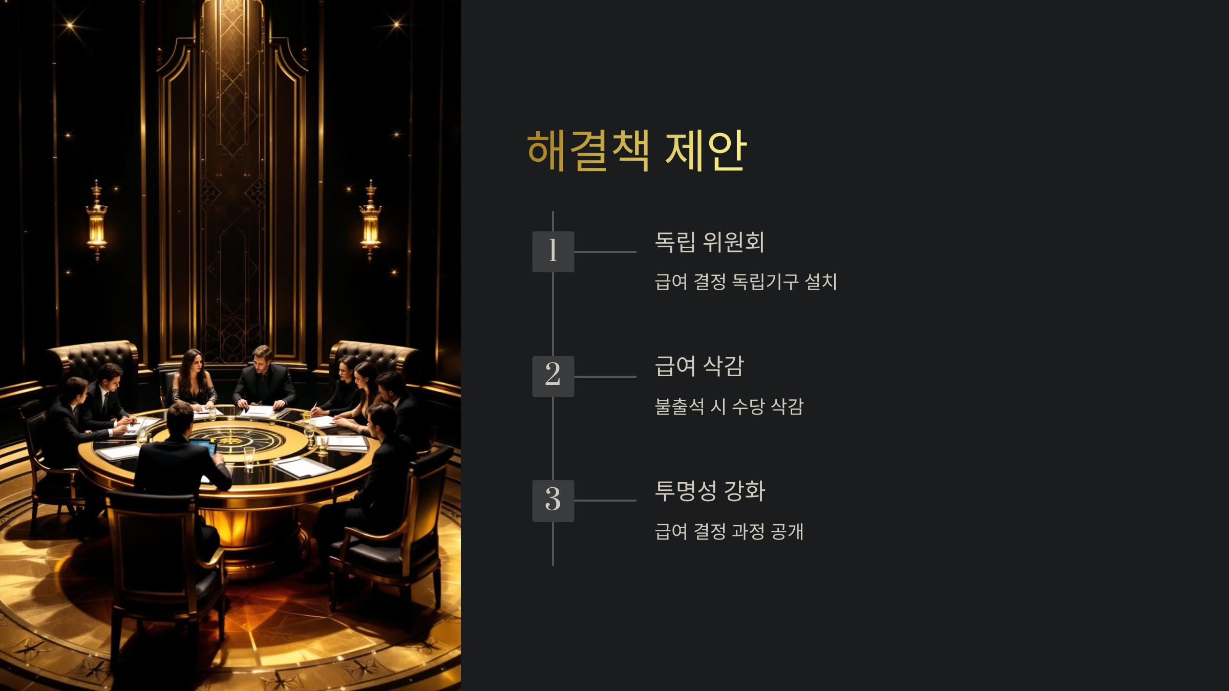 또한, 일하지 않는 의원의 급여를 삭감하자는 의견도 있습니다. 실제로 2020년에는 국회 회의에 불출석하는 경우 수당을 삭감하는 법안이 발의되기도 했습니다. 이는 의원의 책임감을 높이는 데 기여할 수 있습니다.