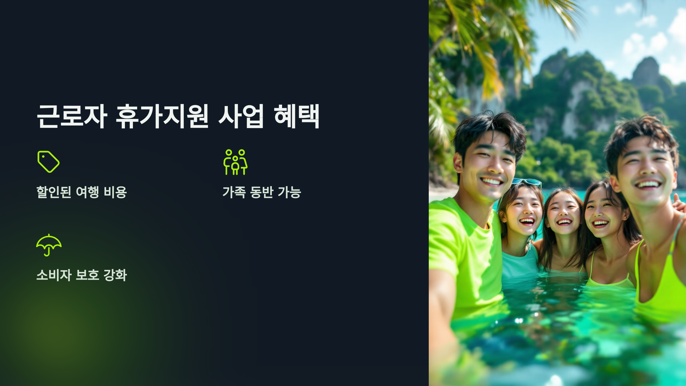 근로자 휴가지원 사업은 정부와 기업이 함께 지원금을 마련해 근로자들이 저렴한 비용으로 여행을 즐길 수 있도록 돕는 제도입니다.