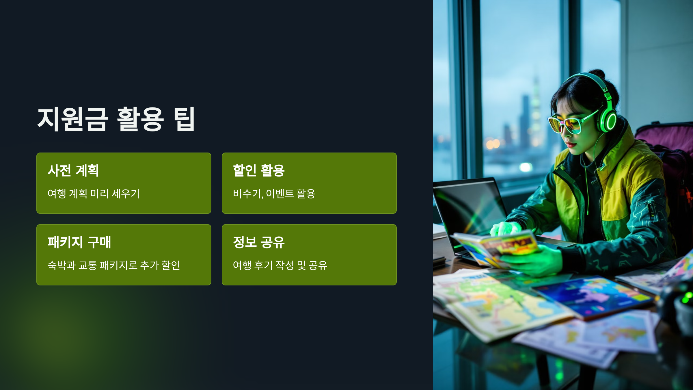 2. 지원금이 사용 가능한 여행 플랫폼과 사용 기한을 반드시 확인하세요.