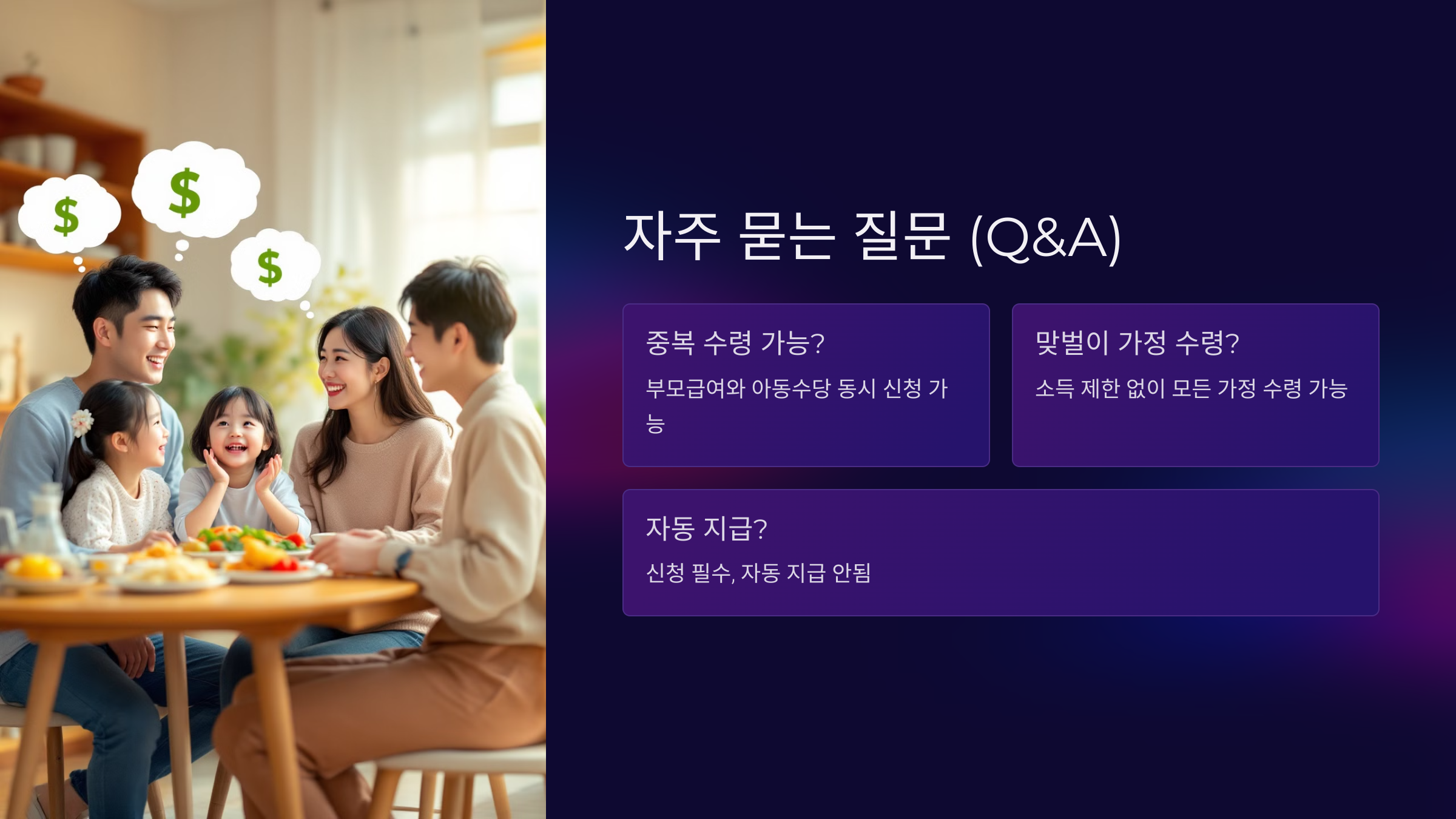 Q2. 맞벌이 가정도 부모급여를 받을 수 있나요?
