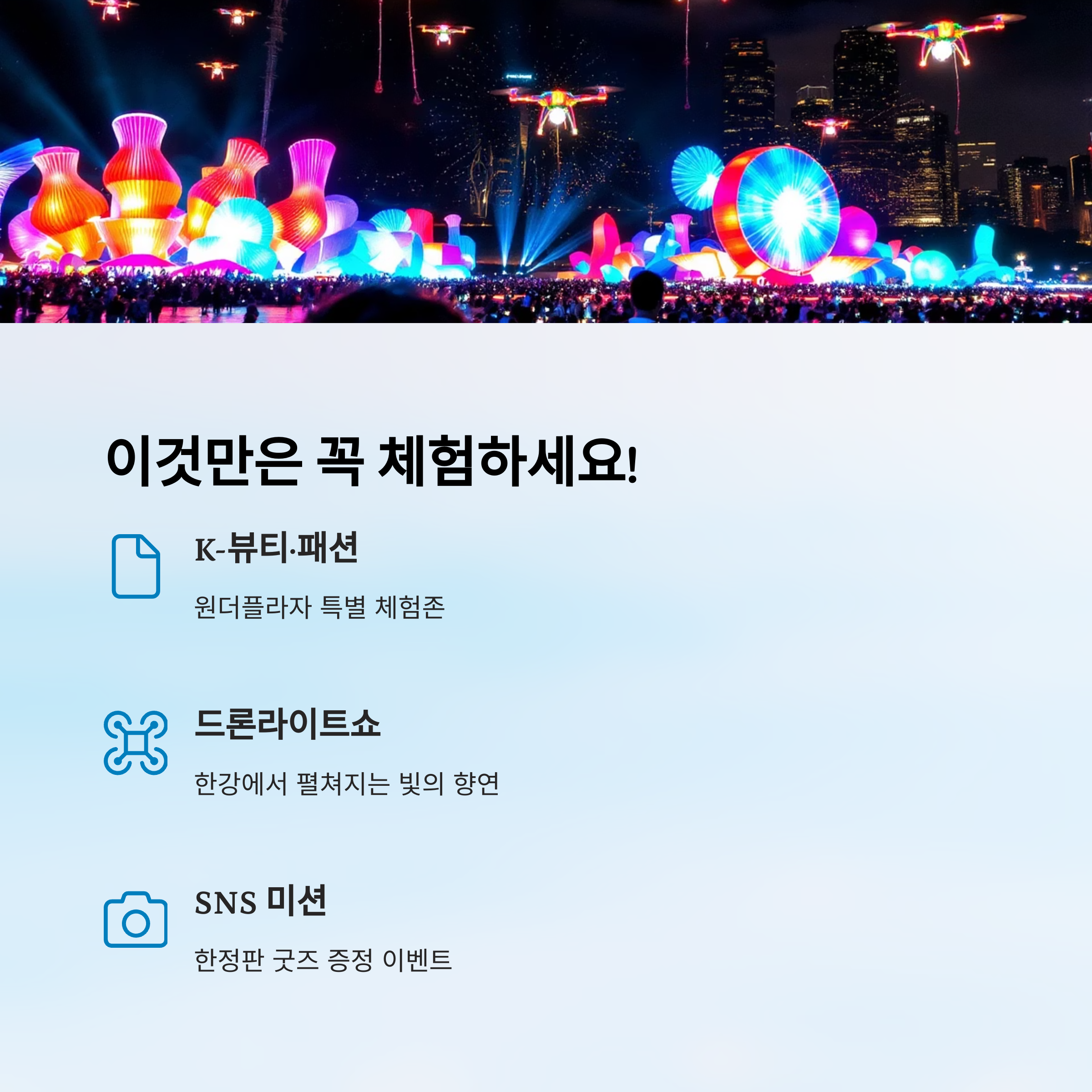 페스티벌 전체가 하나의 거대한 서울 테마파크처럼 느껴질 거예요. 진짜 이건 놓치면 아까워요!