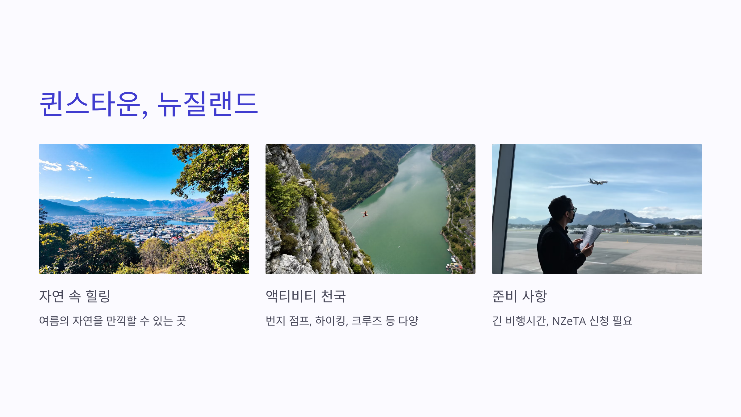 - 신청 방법: 항공권 예약 → 뉴질랜드 NZeTA 신청 → 여권 필수