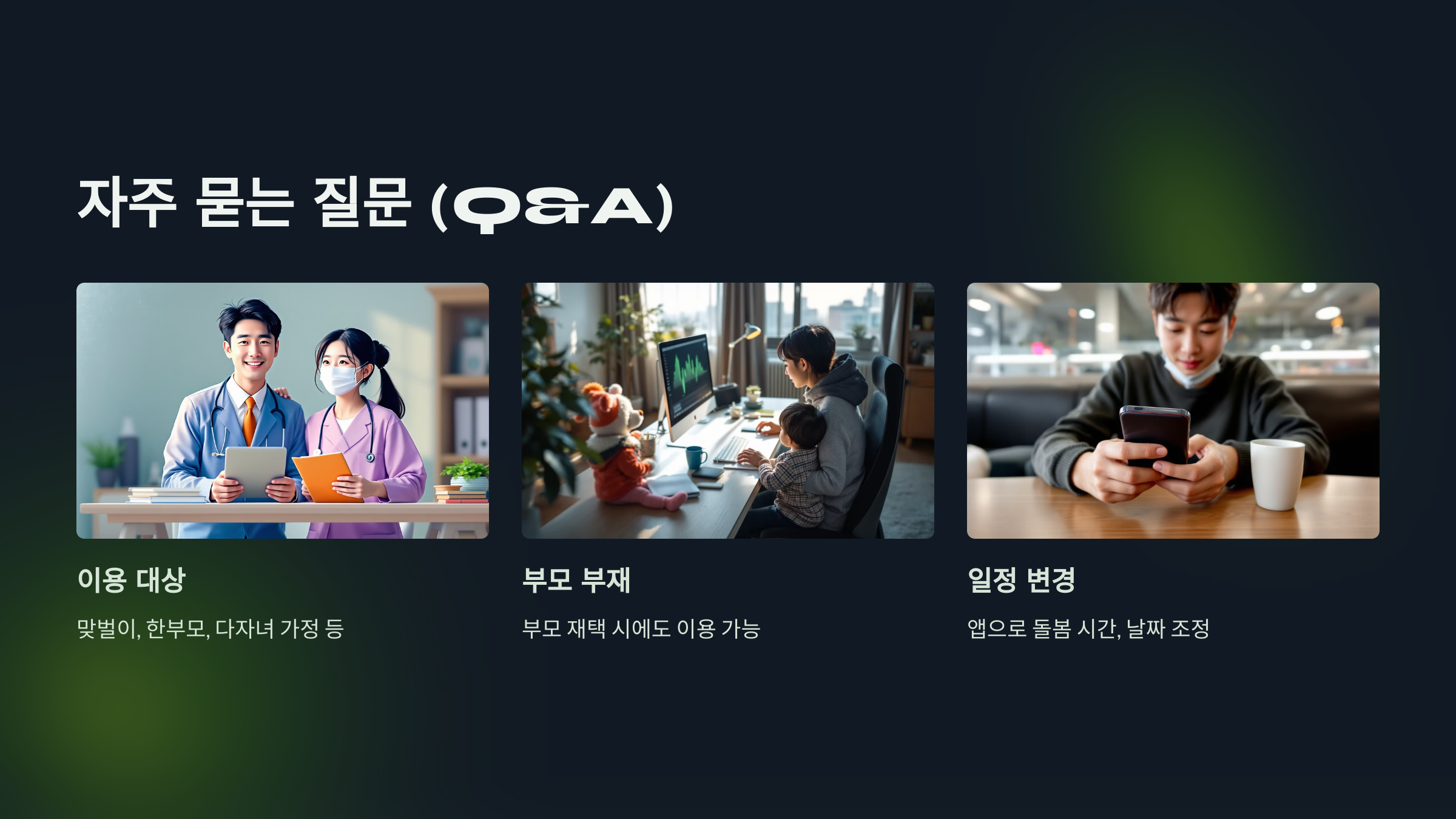 - 장애아동: 전문 돌보미 배치 및 맞춤형 지원.