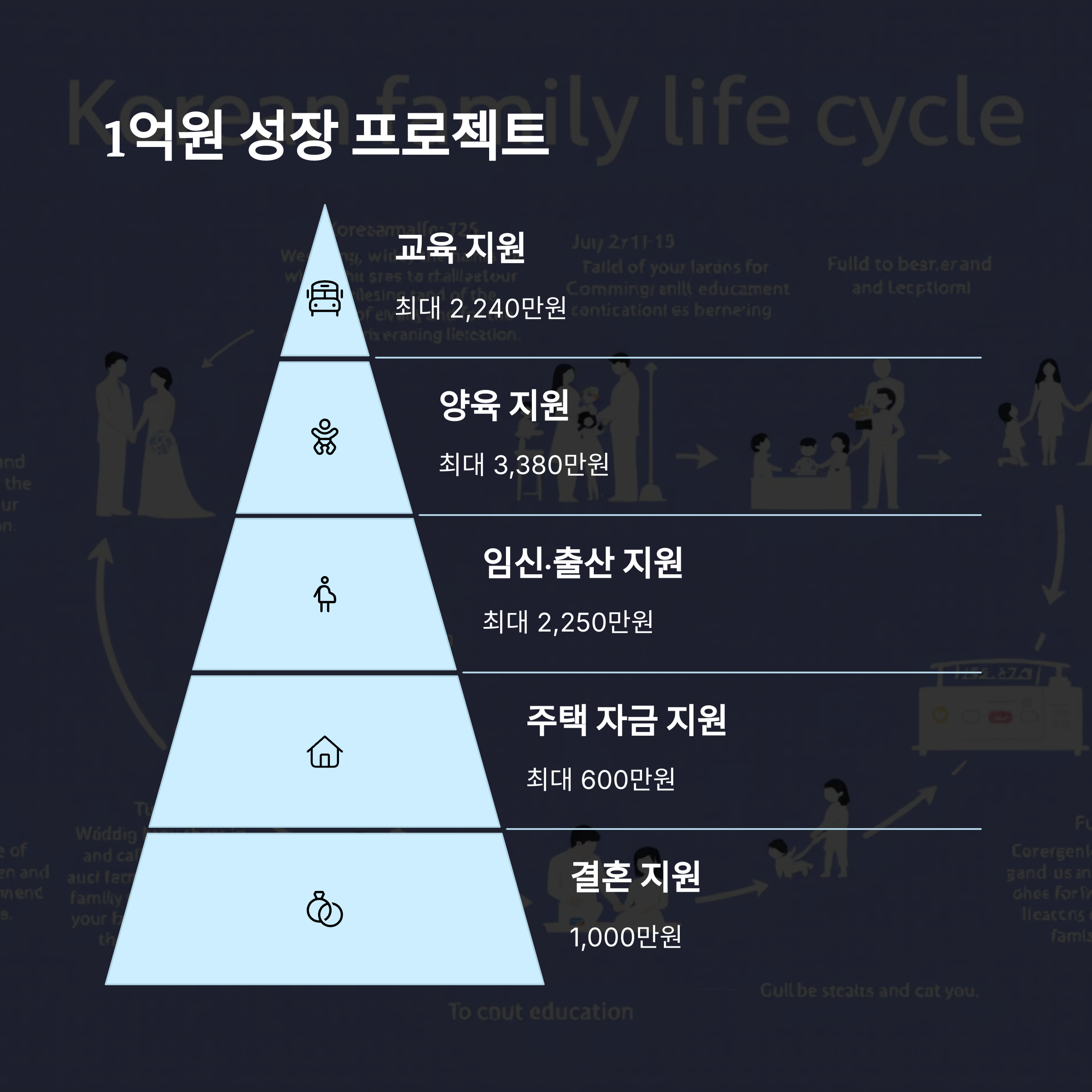 | 교육 지원 | 입학축하금, 교육바우처, 영어캠프, 장학금 등 | 최대 2,240만 원 |