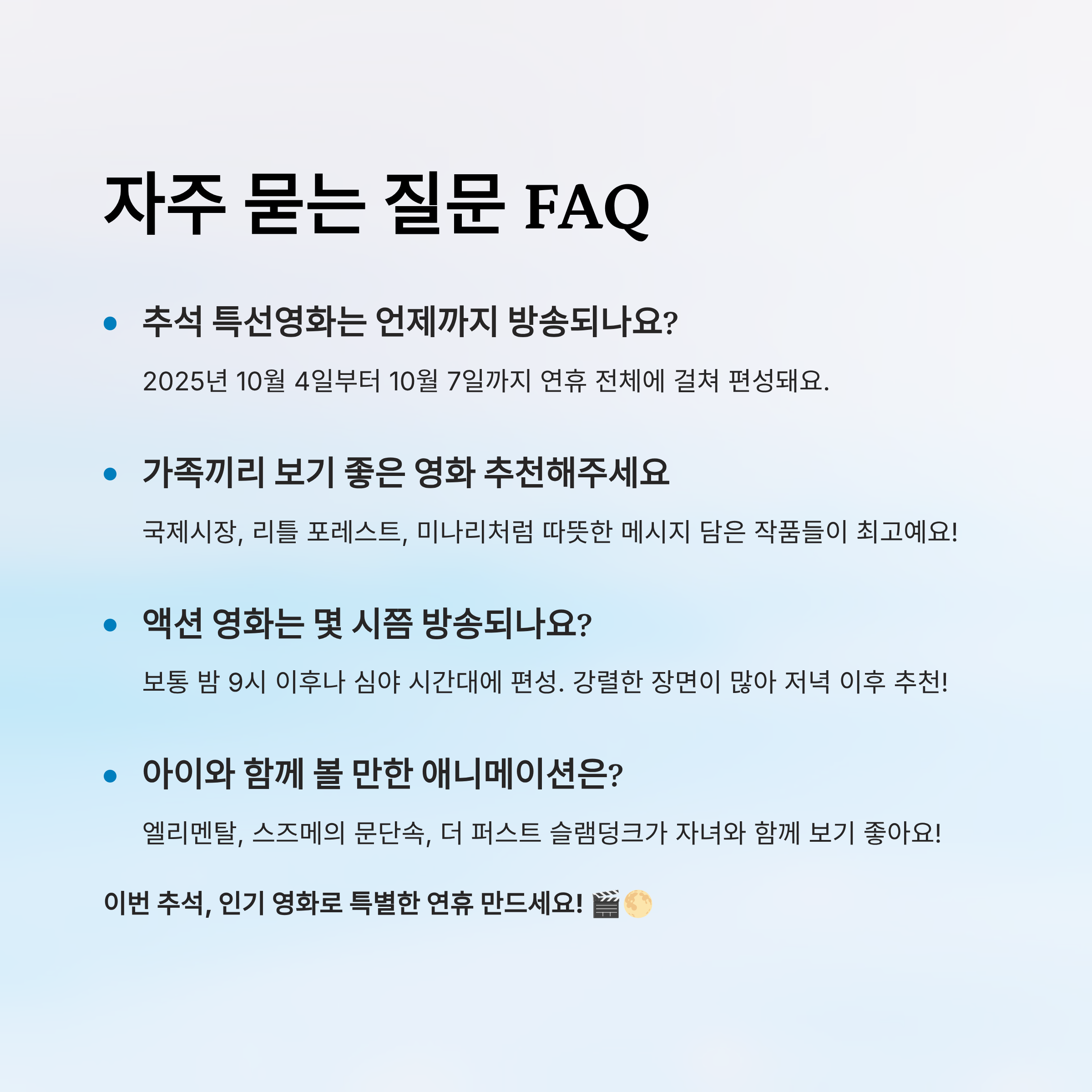 Q1. 추석 특선영화는 언제부터 언제까지 방송돼요?