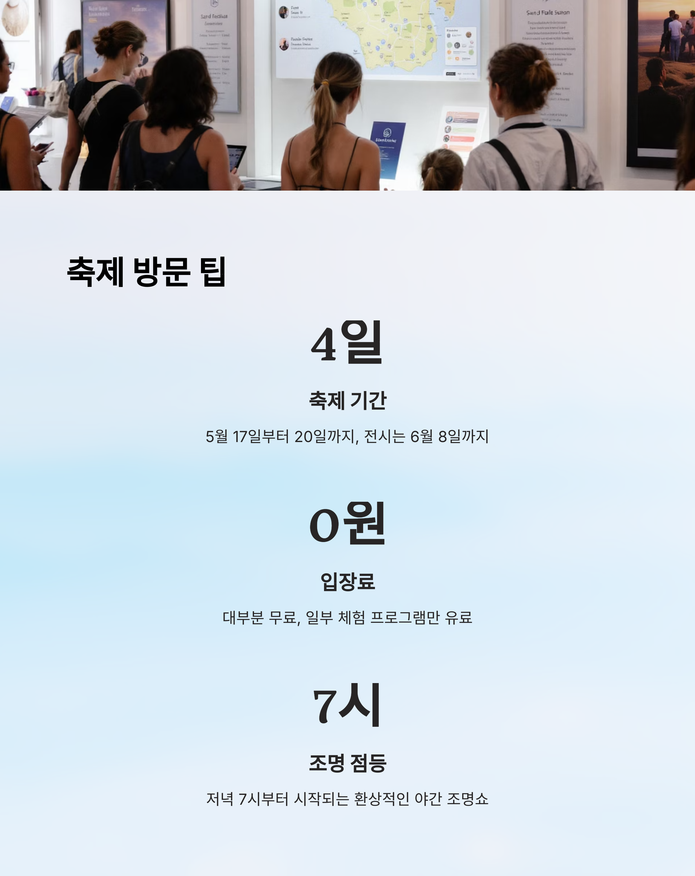 내가 생각했을 때 이 축제는 단순한 '볼거리'가 아니라, 도심에서 자연과 예술을 동시에 체험할 수 있는 진정한 '경험형 축제'라고 느껴졌어요. 누구나 모래 위에 자신의 추억을 새길 수 있으니까요.