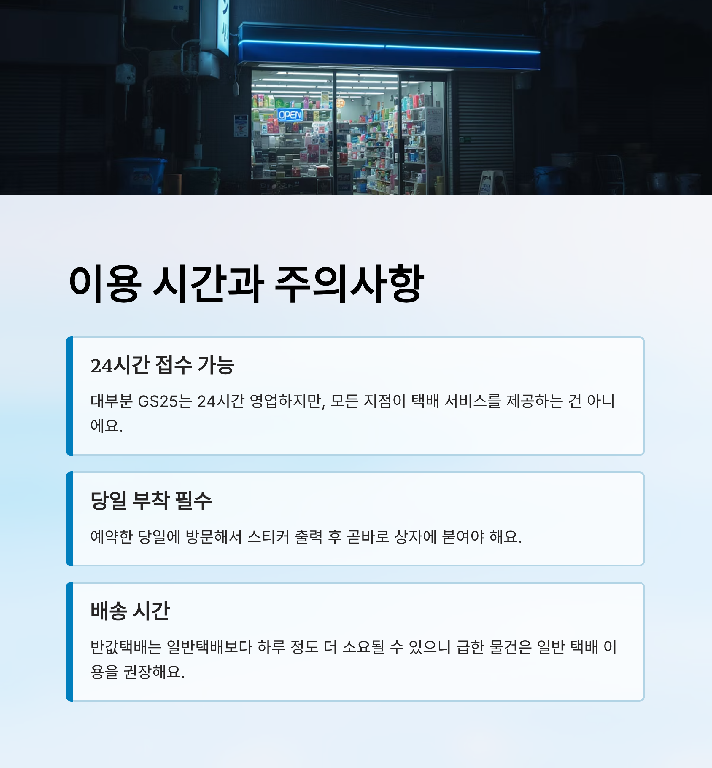 GS편의점은 24시간 운영되기 때문에 시간 구애 없이 언제든지 택배를 보낼 수 있고, 특히 2025년부터는 할인 혜택과 예약 시스템이 훨씬 더 간편해졌어요. 이 글을 보면 5분 안에 예약하고, 할인까지 받을 수 있는 완.벽.가.이.드가 눈앞에 펼쳐질 거예요 😊