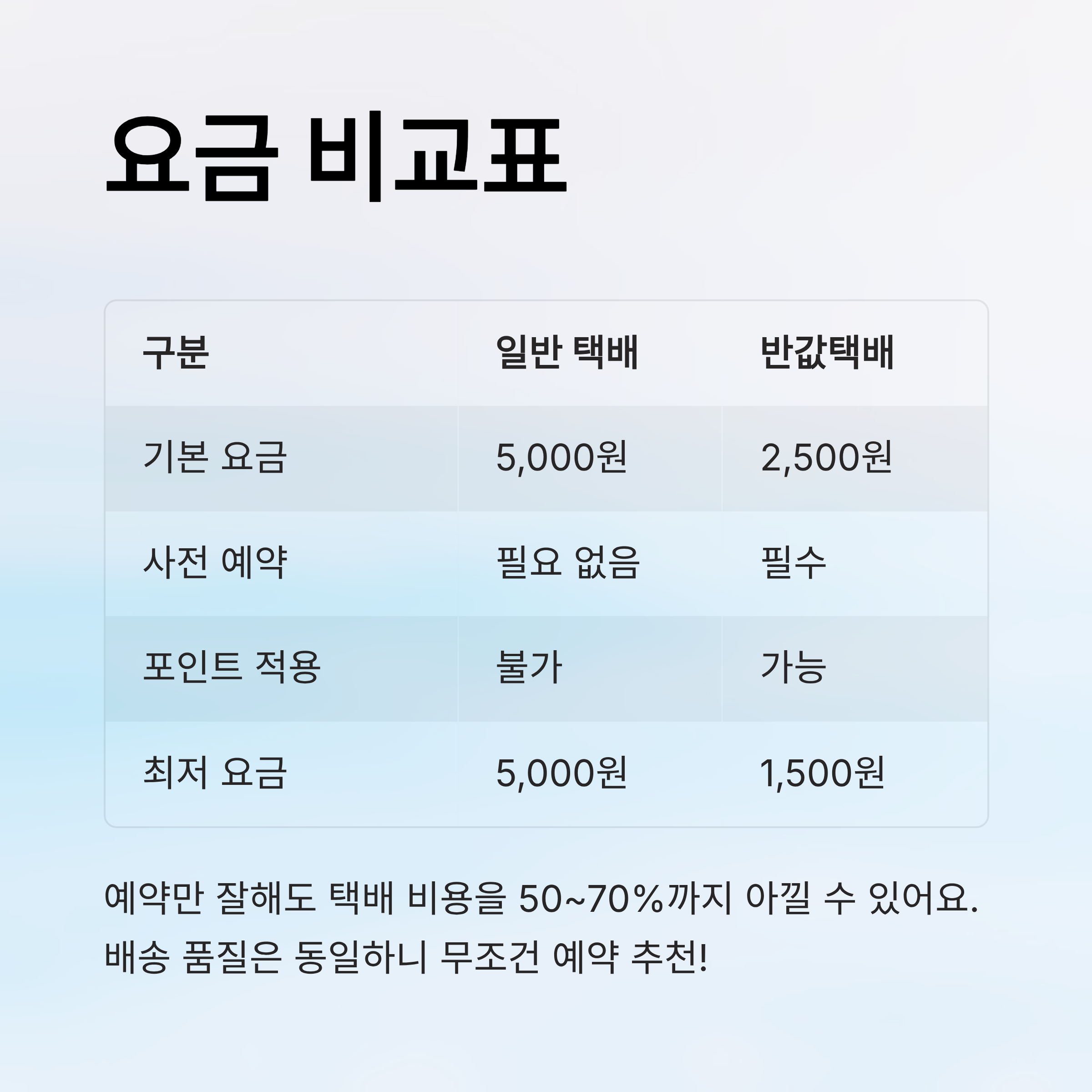 | 구분 | 일반 택배 | 반값택배 | 포인트/쿠폰 적용 |