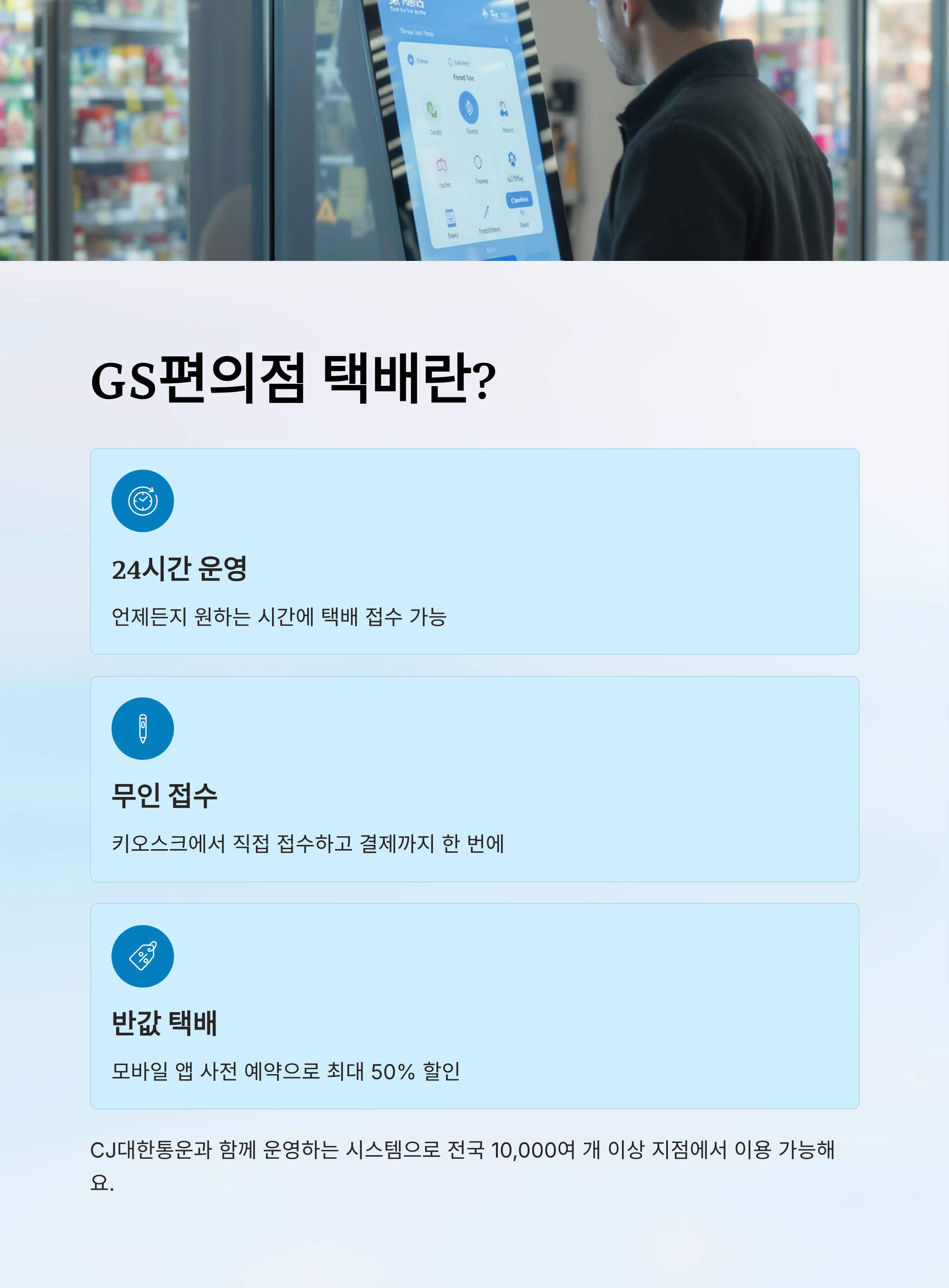 GS편의점은 24시간 운영되기 때문에 시간 구애 없이 언제든지 택배를 보낼 수 있고, 특히 2025년부터는 할인 혜택과 예약 시스템이 훨씬 더 간편해졌어요. 이 글을 보면 5분 안에 예약하고, 할인까지 받을 수 있는 완.벽.가.이.드가 눈앞에 펼쳐질 거예요 😊