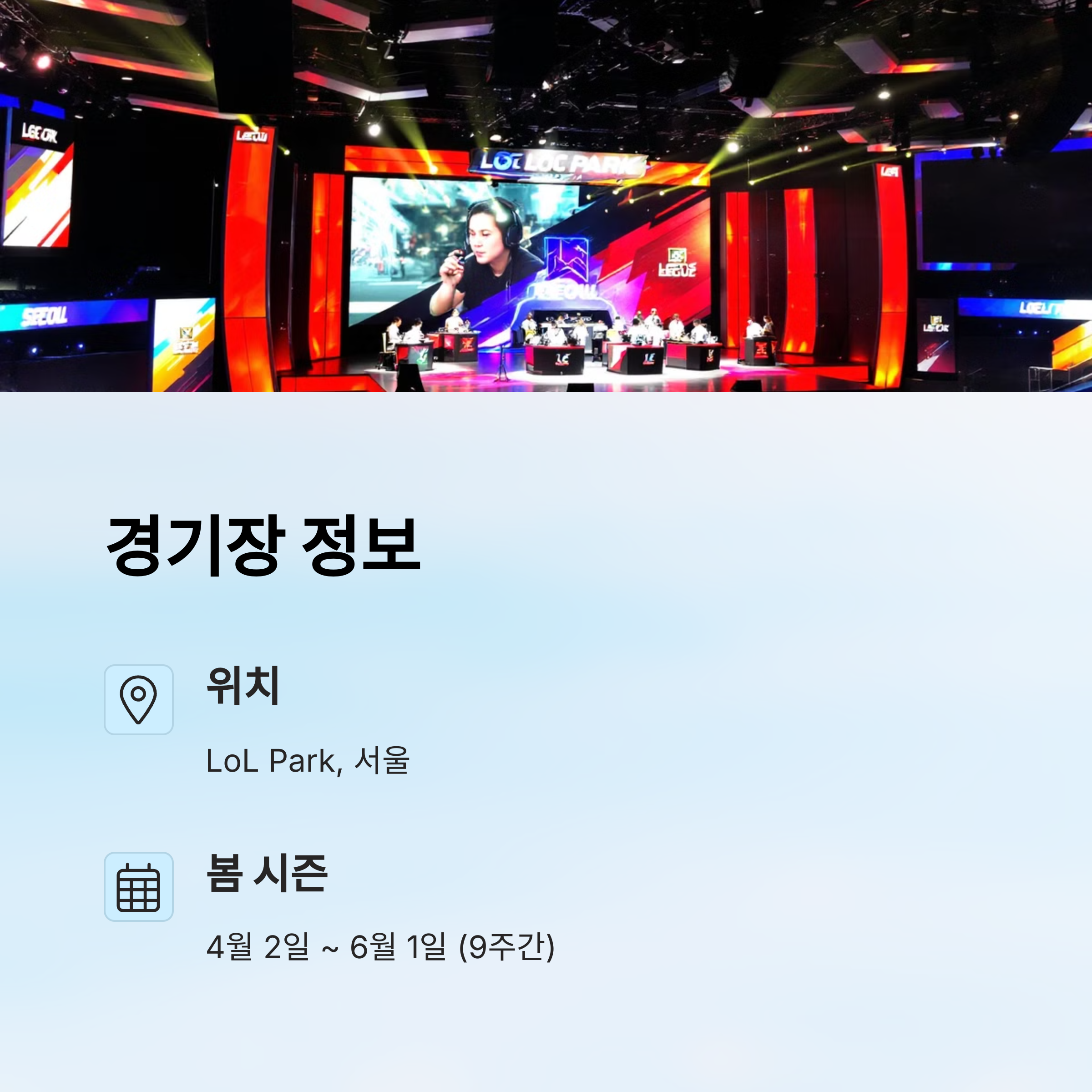 2025 LCK는 서울 종로에 위치한 ‘롤파크(Lol Park)’를 중심으로 모든 정규 시즌 경기를 진행해요. 롤파크는 지하철 1호선 종각역 3번 출구와 연결되어 있어 접근성이 뛰어난 장소예요. 인근에 카페와 식당도 많아 팬들 사이에선 '롤 성지'로 불리죠.