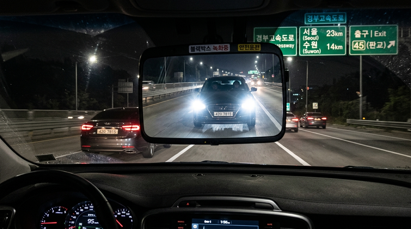 1차로에서 뒤차가 비키라고 하이빔(상향등)을 연속으로 켜거나 경적을 과도하게 울리는 행위는 '난폭운전'으로 처벌받을 수 있습니다. 아무리 앞차가 답답해도 위협적인 행동은 금물입니다!