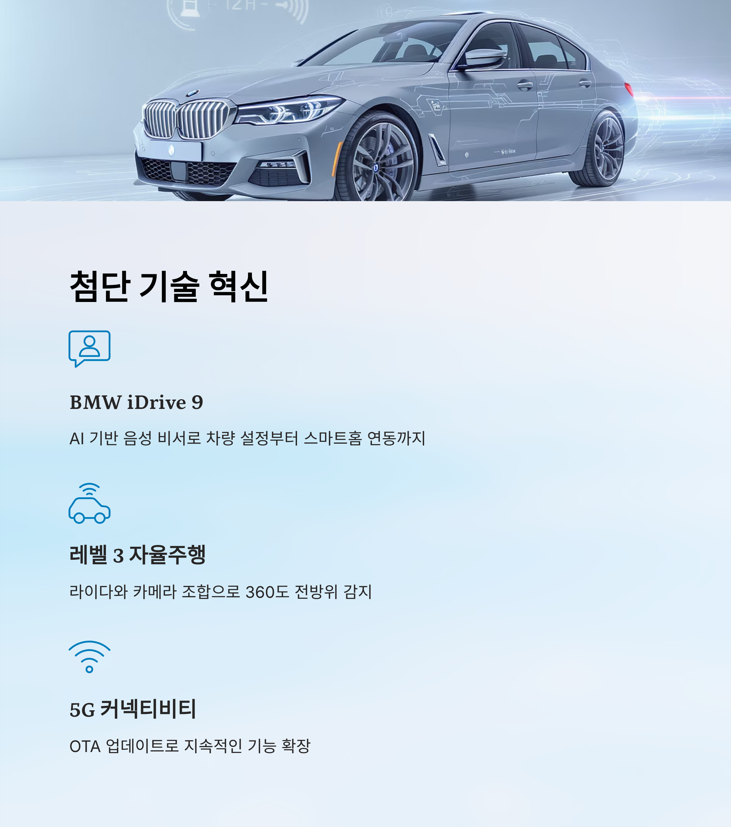 | 인포테인먼트 | iDrive 9, AR 내비게이션 | AI 기반 맞춤형 제안 |