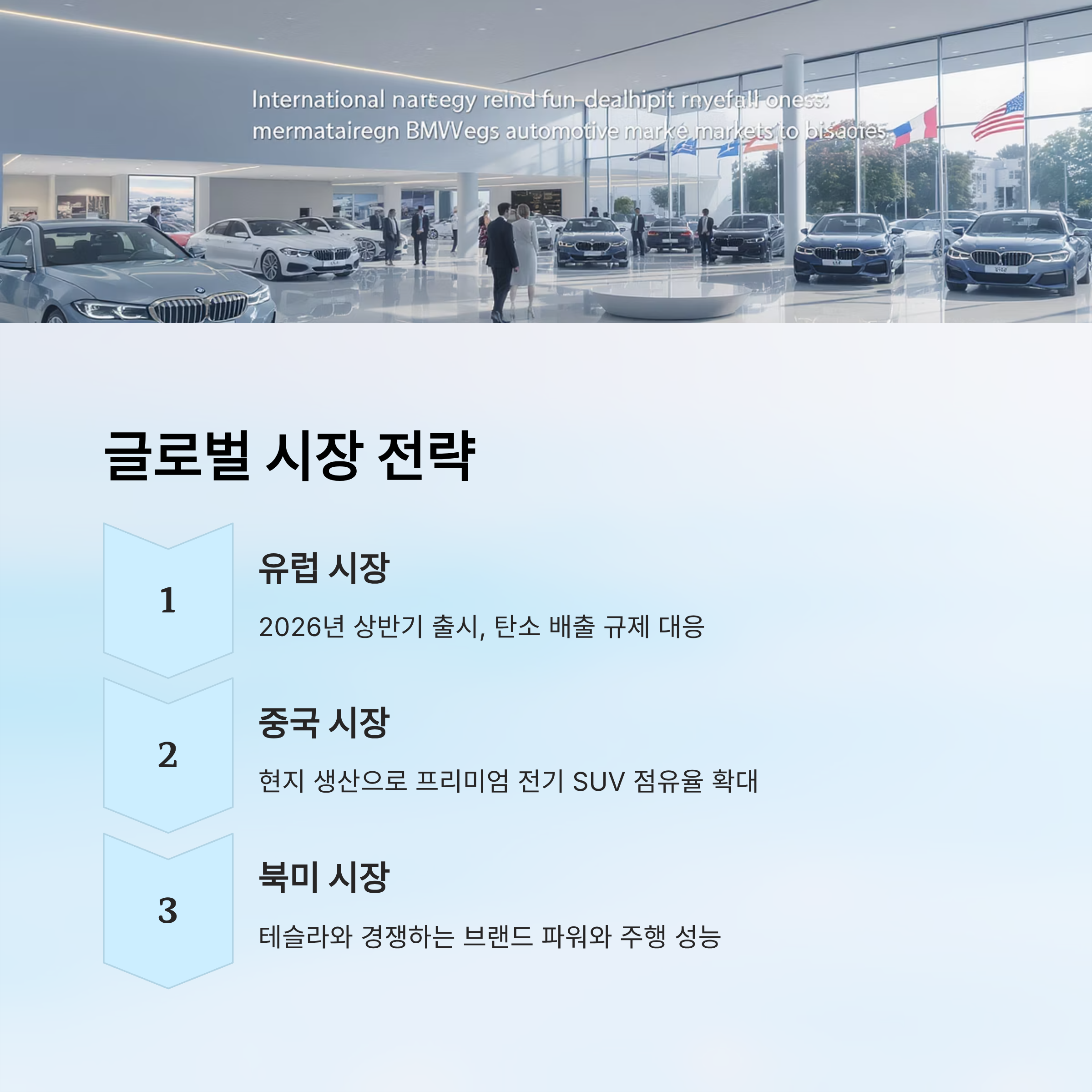 표를 보면 BMW가 단순히 신차를 내놓는 것에 그치지 않고, 각 지역별 특성에 맞는 맞춤 전략을 세우고 있음을 알 수 있어요. 🌐