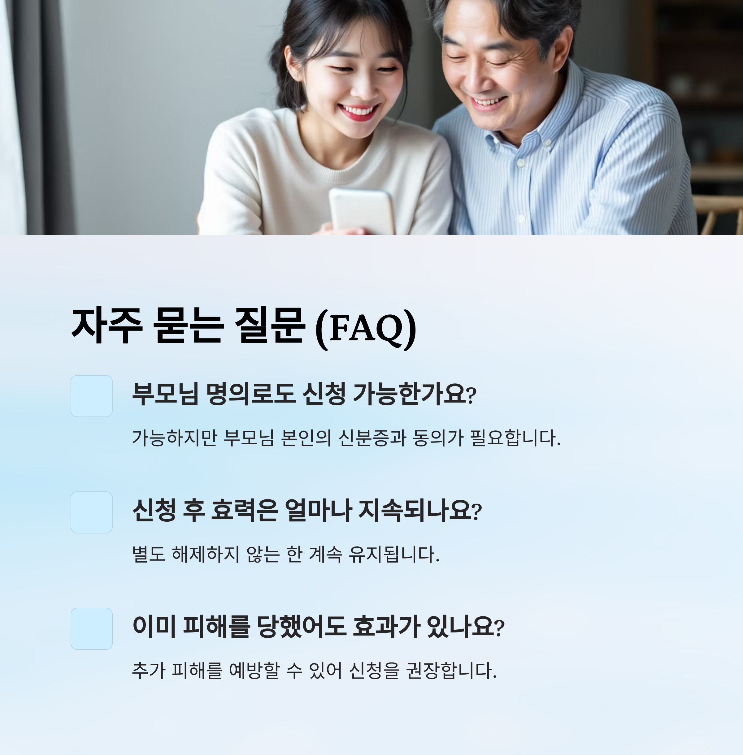 특히 가족 구성원 중 스마트폰 사용에 익숙하지 않은 어르신이 계시다면, 반드시 함께 신청해두는 걸 추천해요. 부모님, 조부모님 명의는 사기범들이 자주 노리는 타깃이거든요. 한 번만 등록해두면 오랜 시간 안심할 수 있어요! 🧓👵